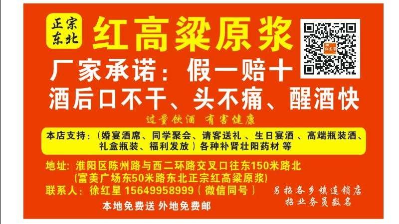 县总代理 酒后头不疼 口不干 醒酒快 本地免费送 异地免费邮 地址:淮阳区陈州路与西二环路交叉口往东150米路北红高粱原浆(富美商场斜对面往东50米路北)