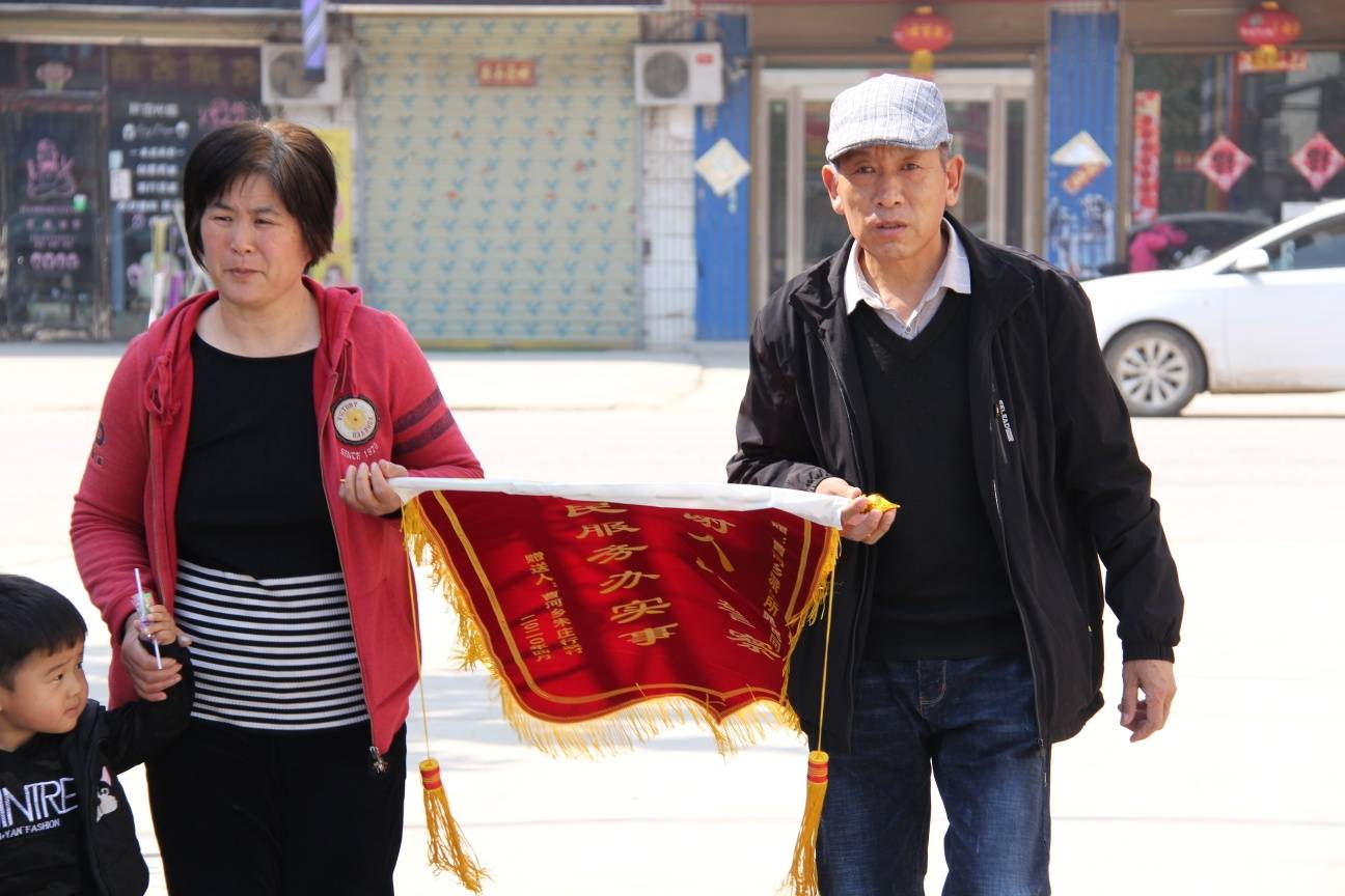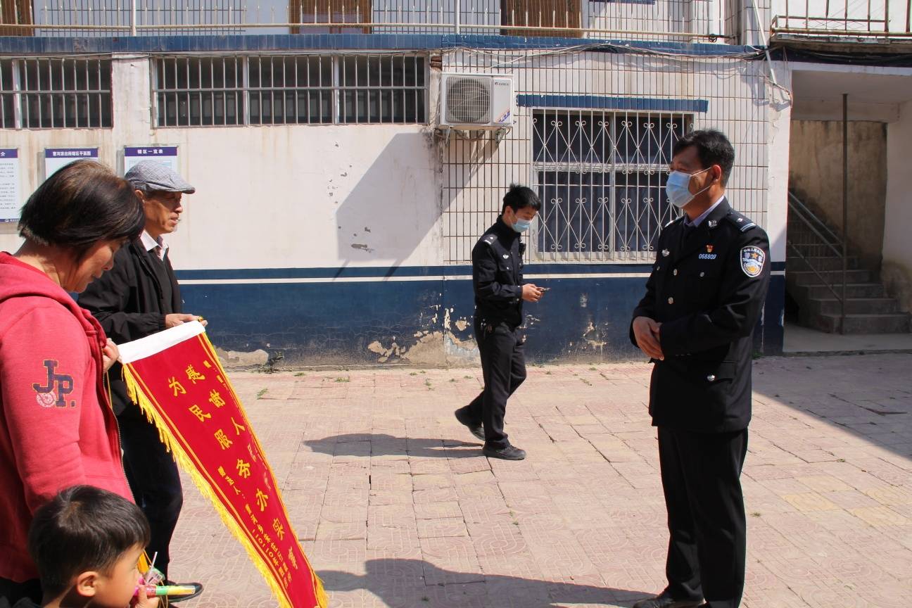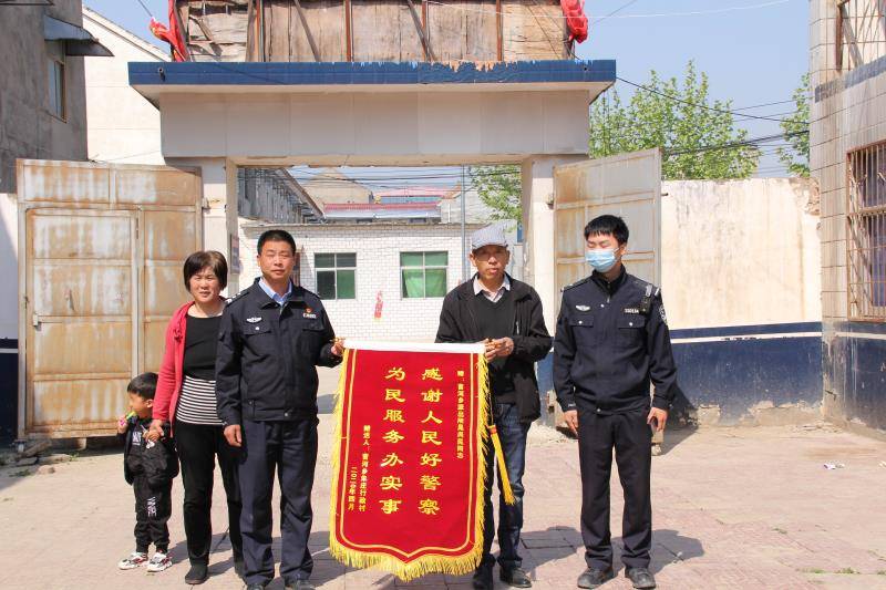 晁玉春夫妻俩为曹河乡派出所辅警赠送锦旗表示感谢