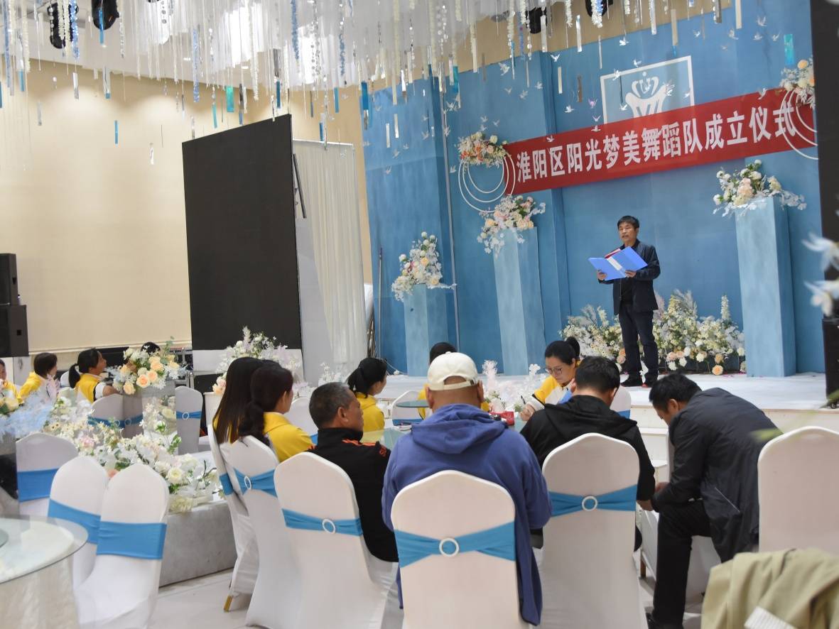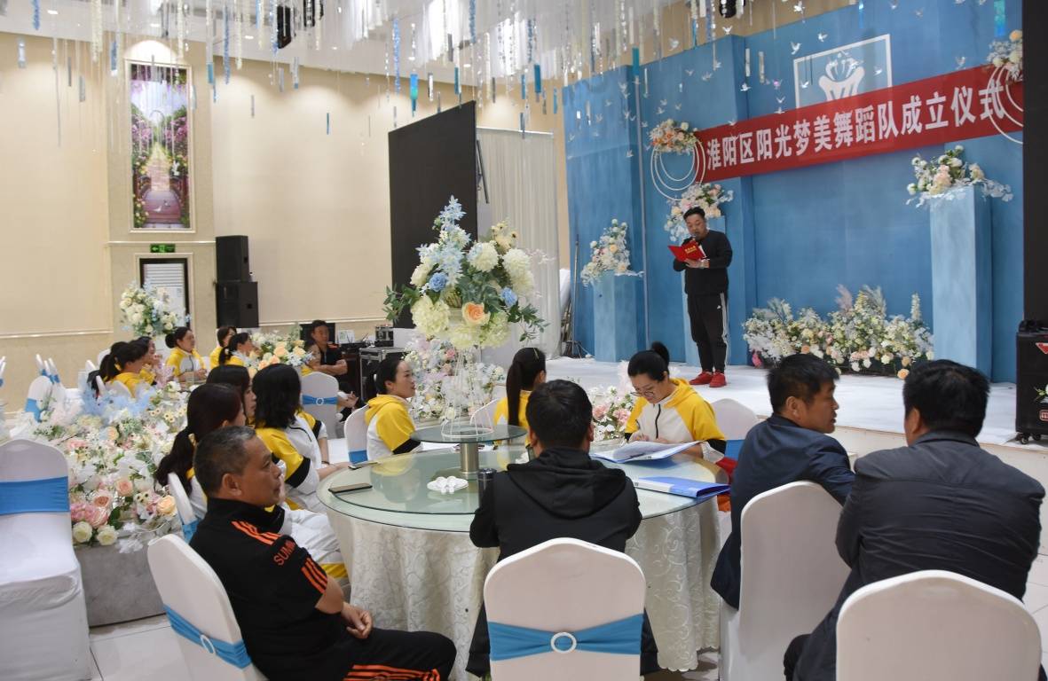 区阳光梦美舞蹈队成立大会在富平春大酒店举行。出席现场活动的人员有阳光梦美舞蹈队领队杨军及全体队员,淮阳区音协主席吴怀清、淮阳区炫舞协会会长史进、淮阳区摄影家协会副主席袁东升、淮阳区民间艺术协会副会长付永生、双喜文化传媒总经理史新华等应邀出席;仪式有叶青老师主持。