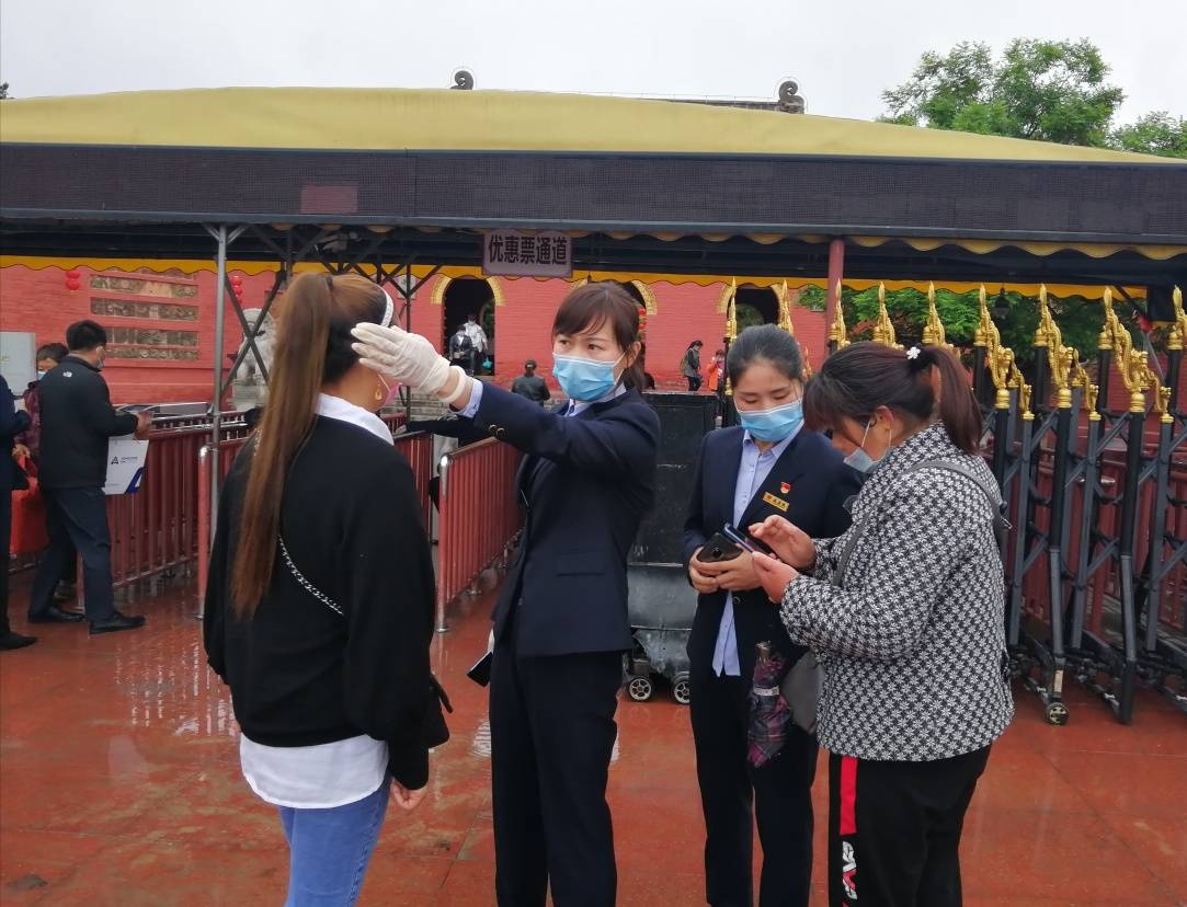 景区于2020年5月8日起恢复开放室外景点。尽管今天下起了小雨,前来祭拜人祖伏羲的游客还是不少。太昊陵景区为保证游客安全,采取了入园体温检测、限制客流量、实行线上实名制约购票、所有游客佩戴口罩、保持距离等措施,记者在现场看到,所有游客在景区工作人员的引导下,有序入园,文明祭祀。