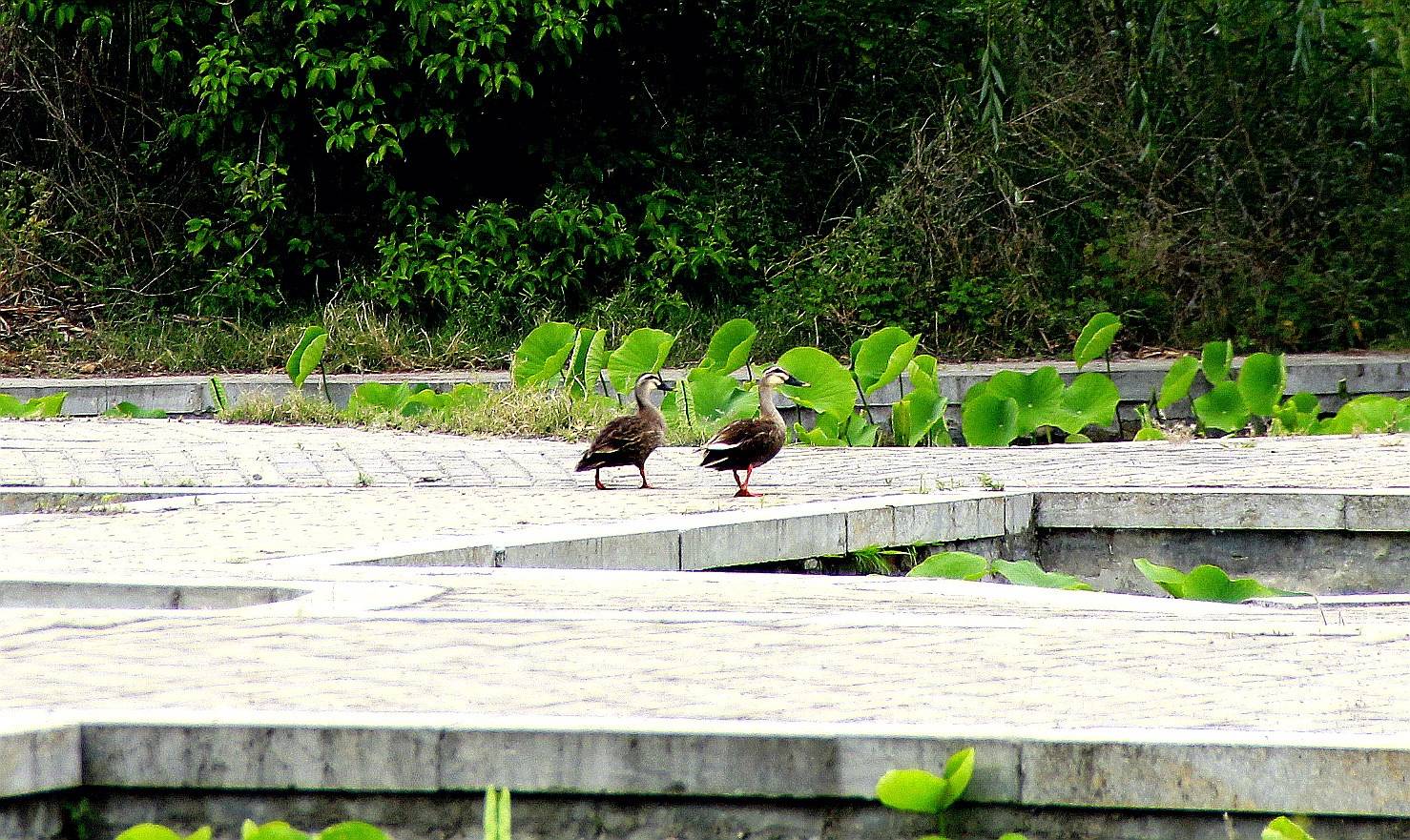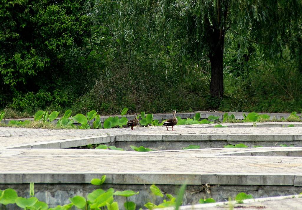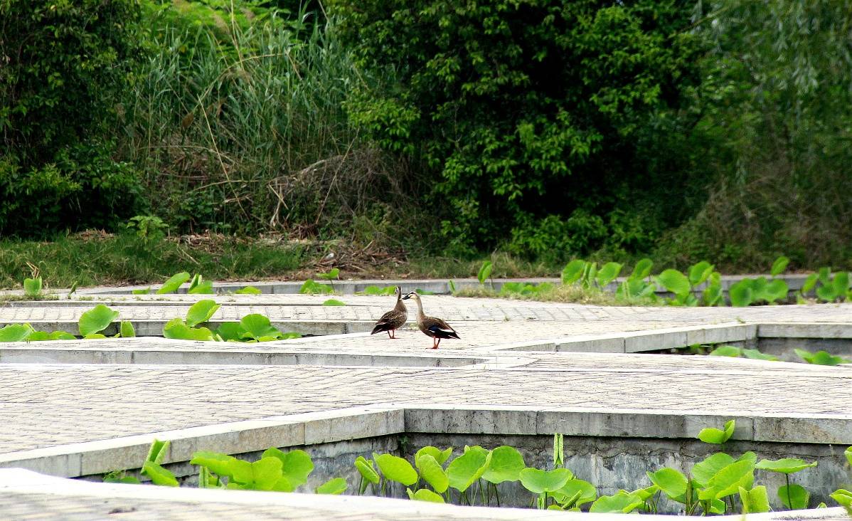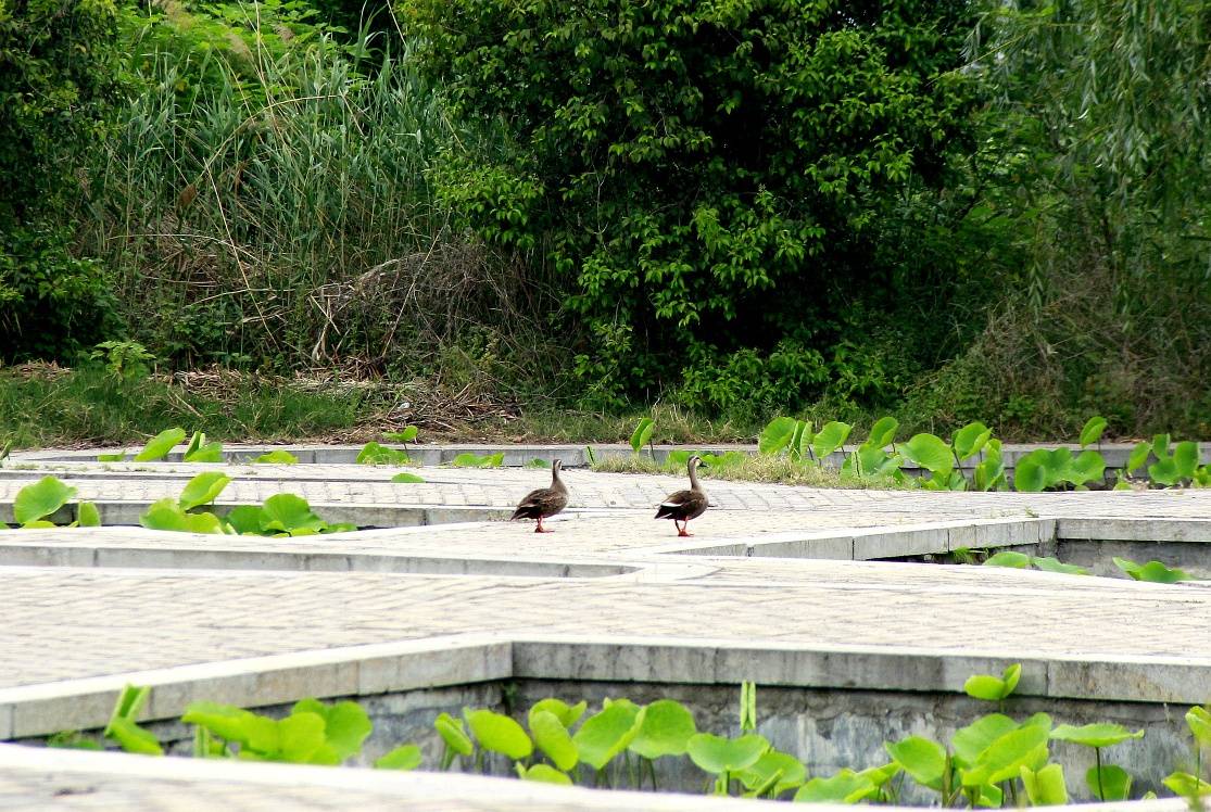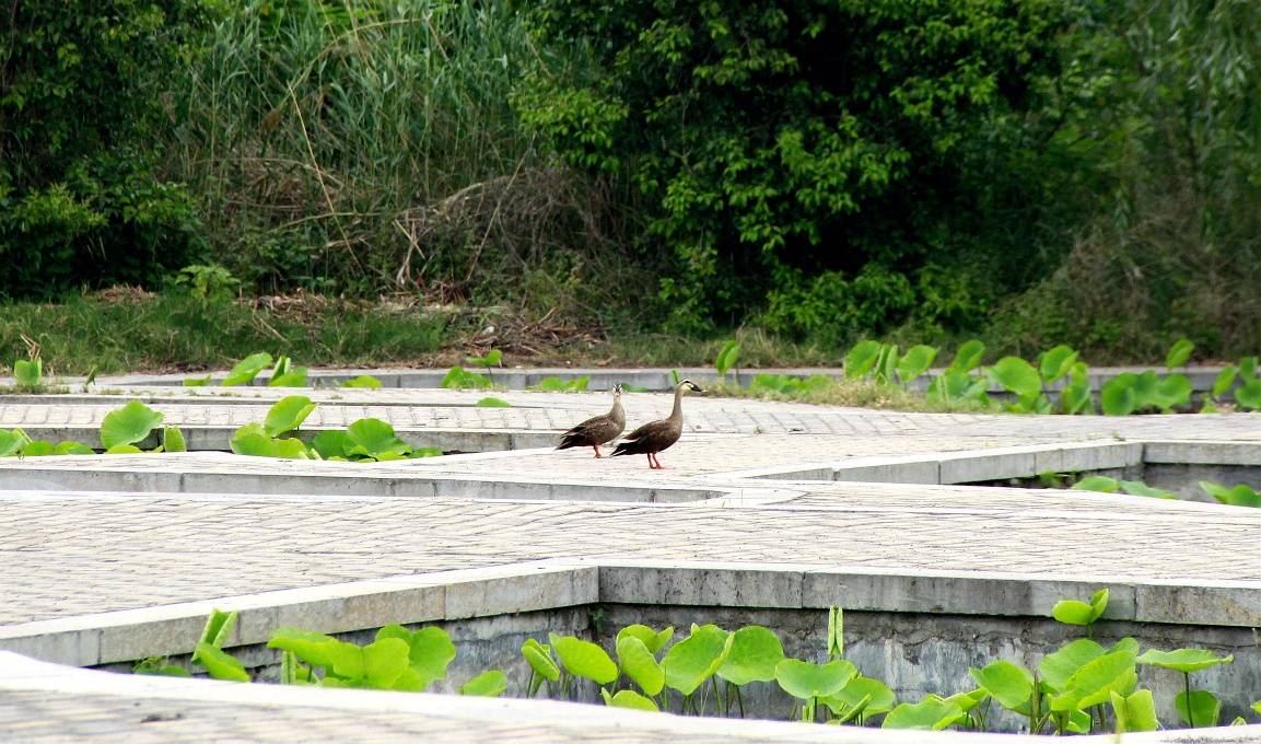 淮阳龙湖湿地(荷苑)现野水鸭登岸