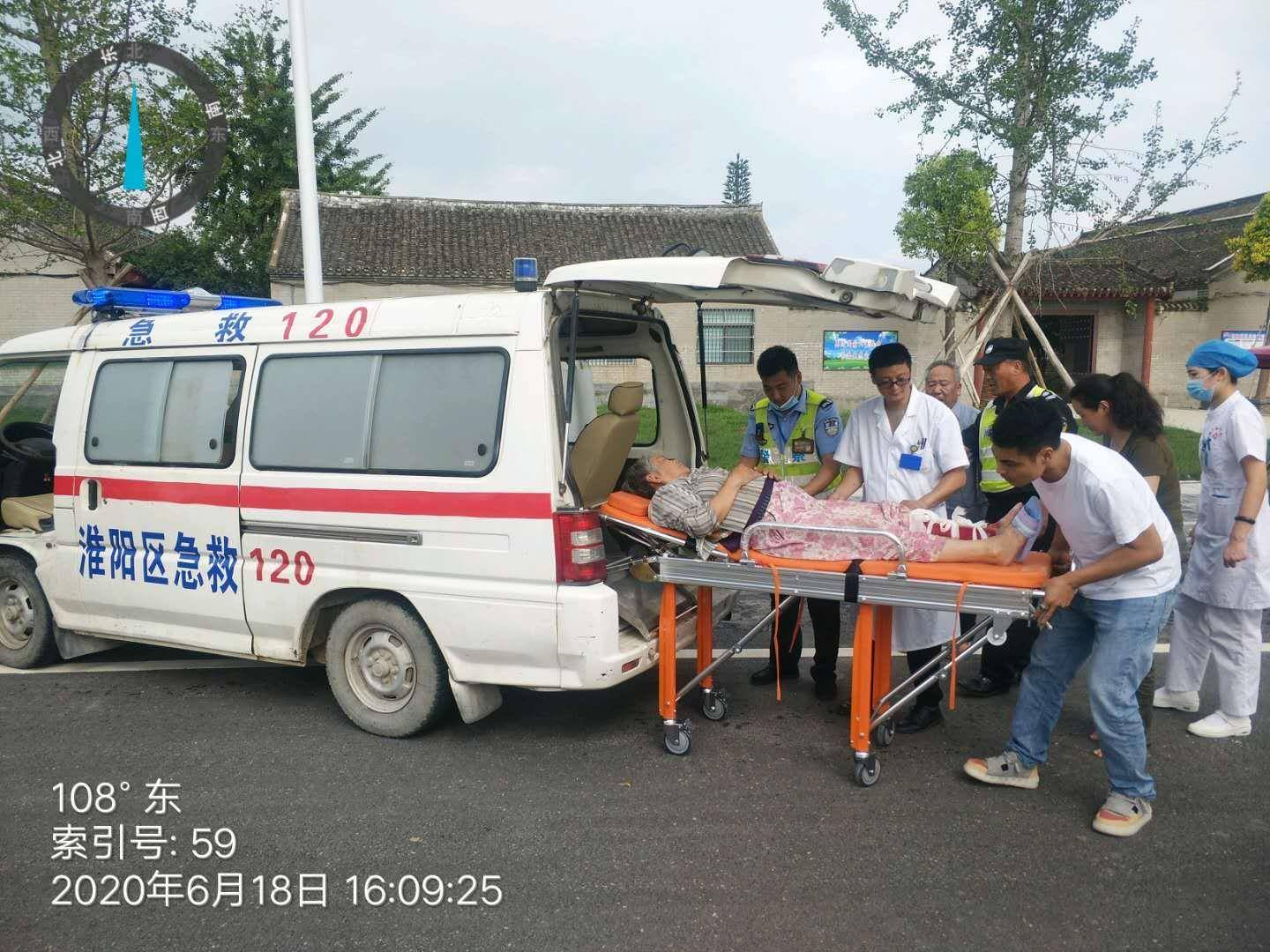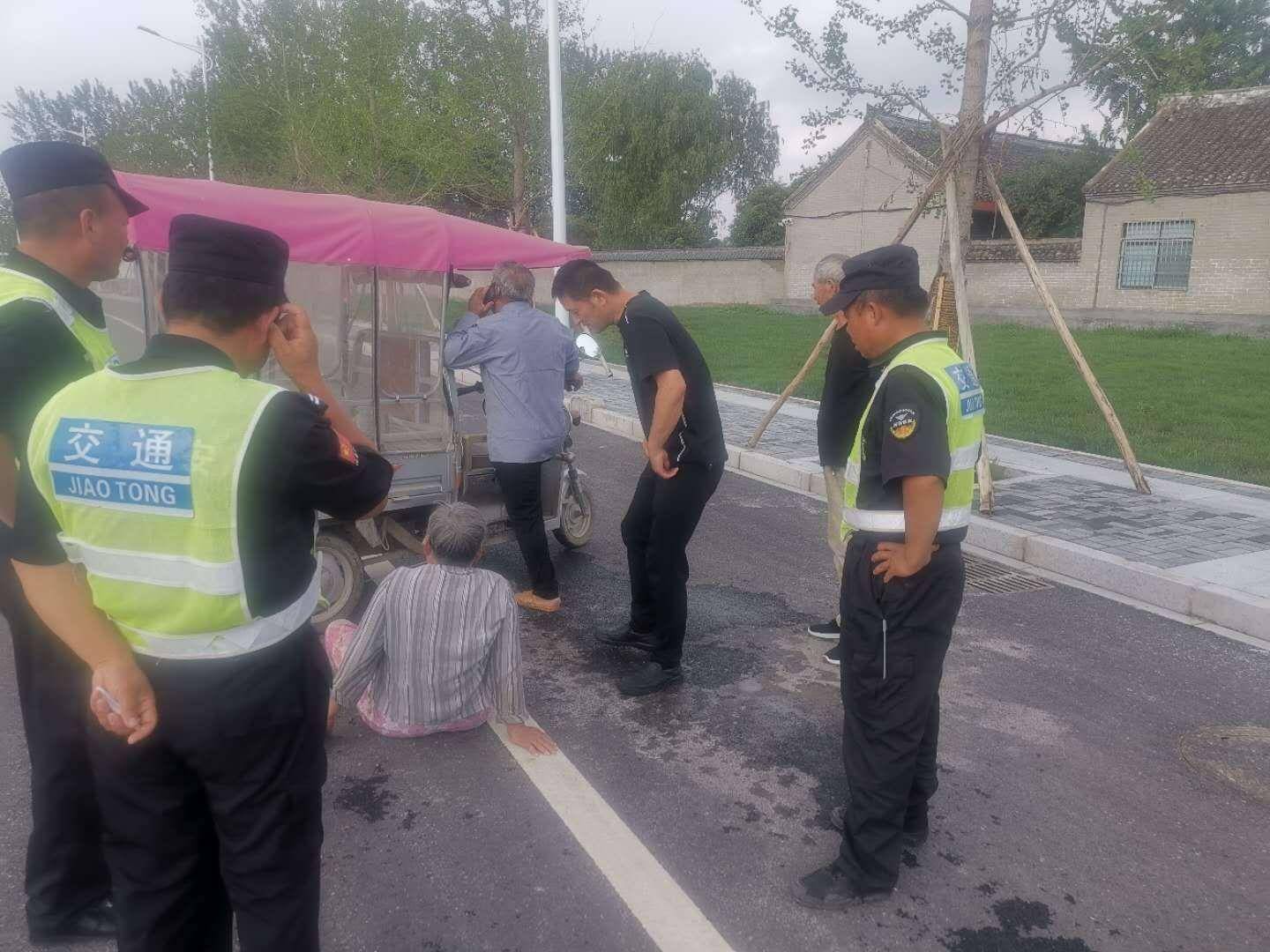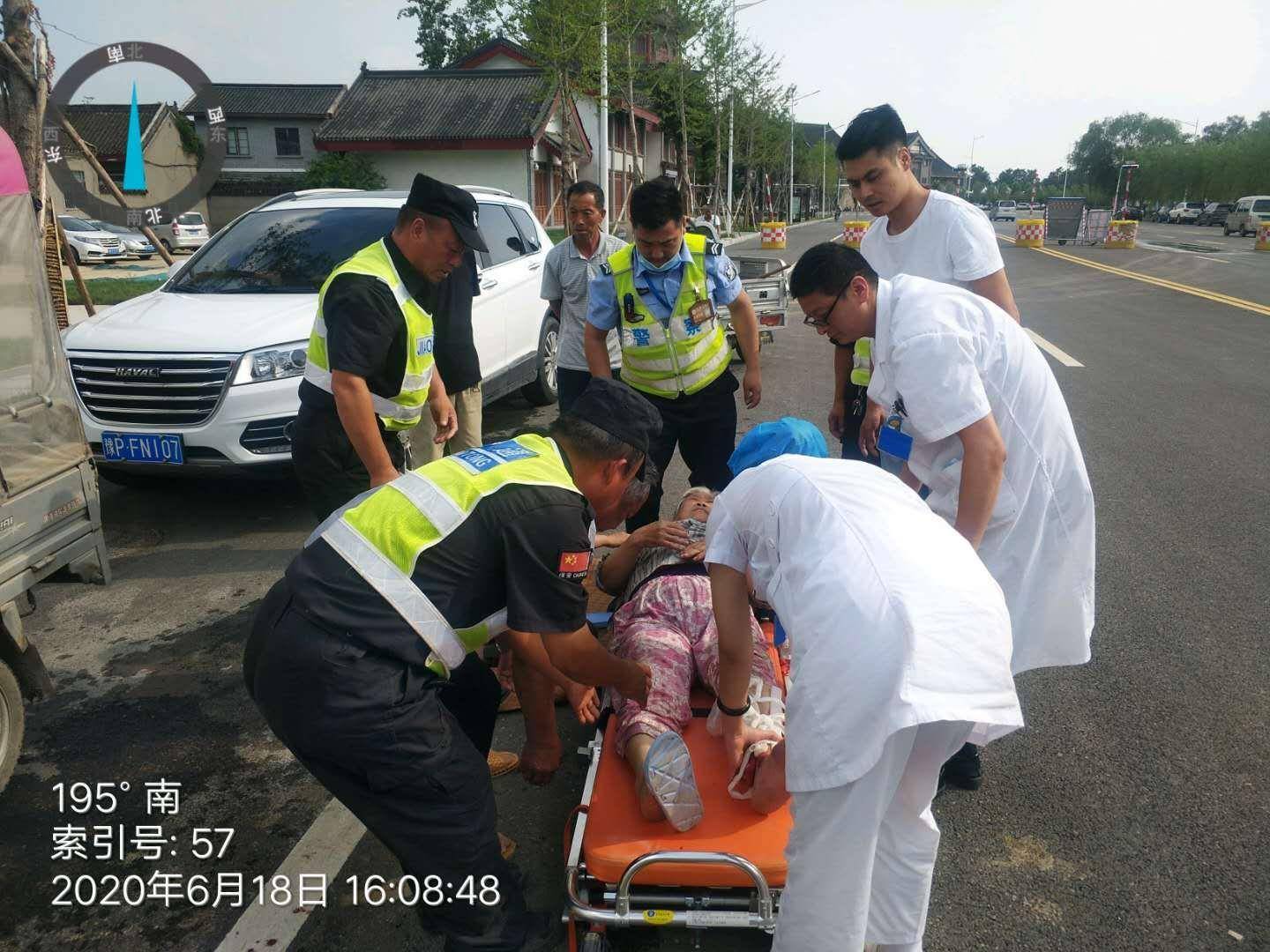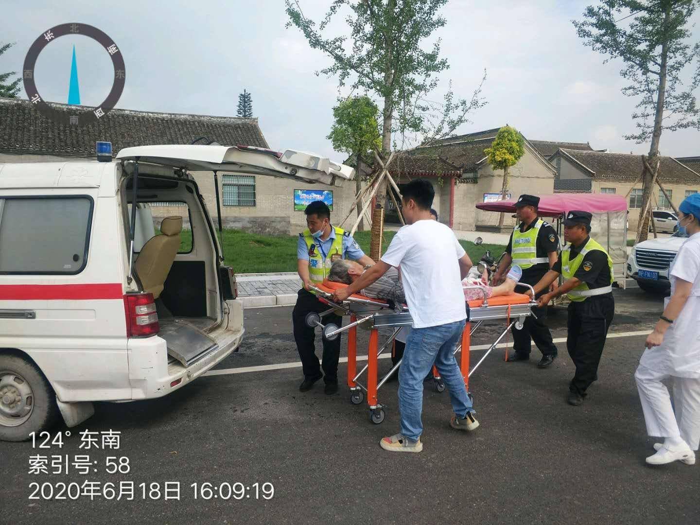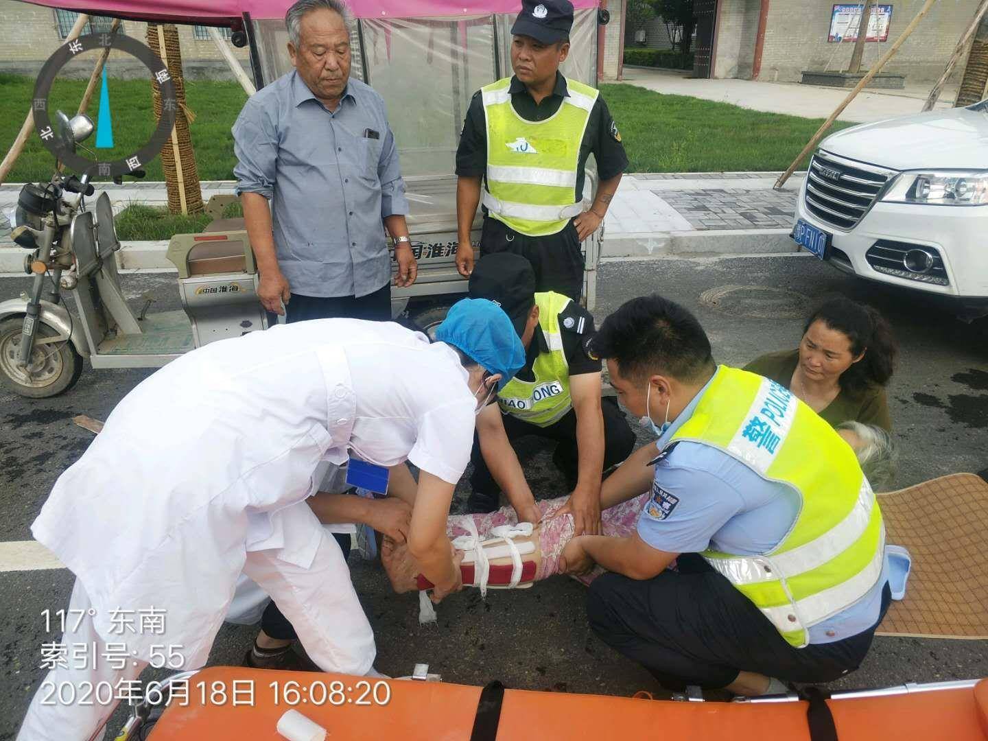 6月18日区综合执法办公室于桥古街卡点,执勤值班人员孔宇、路宽及现场安保人员,发现两位年长老者骑电车因操作不当发生侧翻,两位老人被电车压在车下情况非常危险,现场执勤人员奔跑至事发地点将电车扶起,把两位老人救出,发现其中一老者小腿被电车砸中伤势较重,执勤人员一边拨打120救护中心电话,一边与伤者家属取得联系,待救护车来到后,协同医护人员将伤者腿部进行包扎,共同把伤者抬上救护车,使受伤人员得到及时救治。