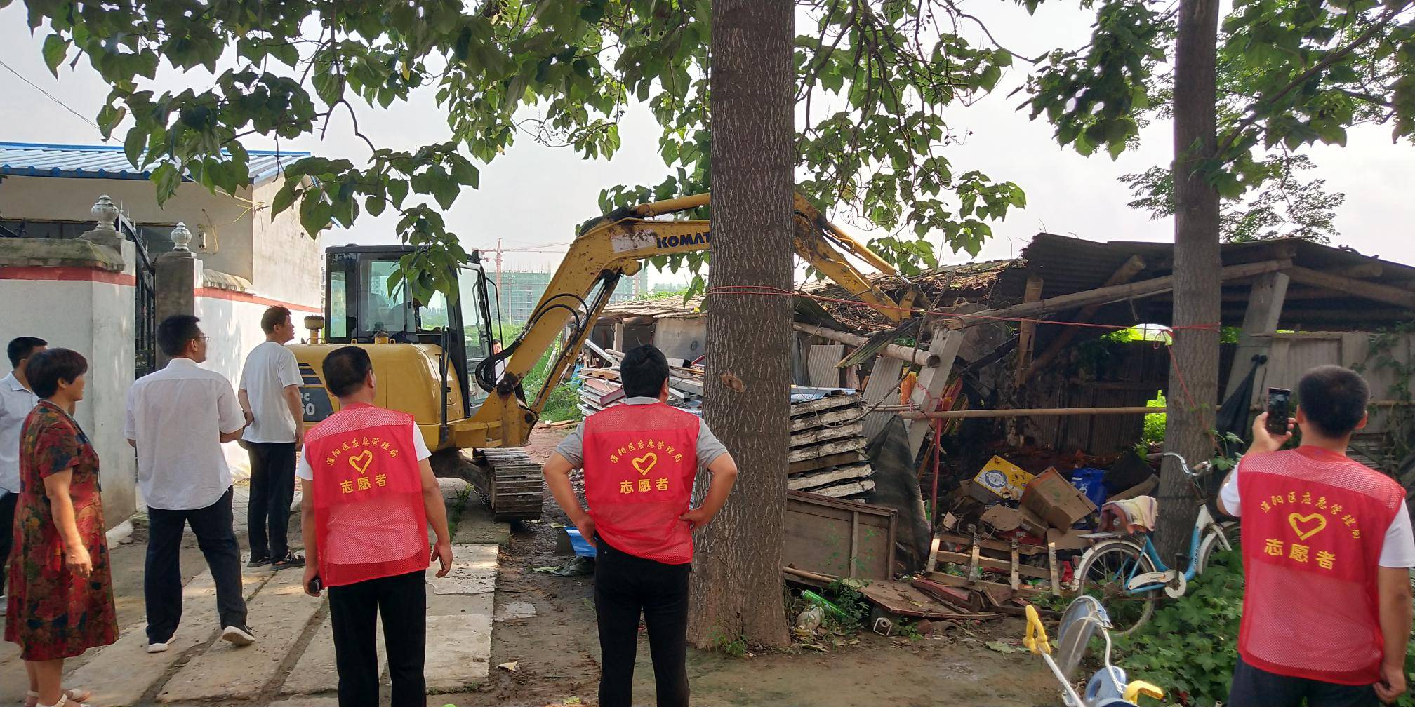 淮阳区应急管理局联合城管、城关镇在张小庙村拆除违章建筑