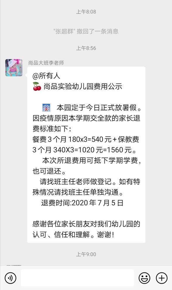跟学校一起算了各项费用以后退了2940,家长没有异议
