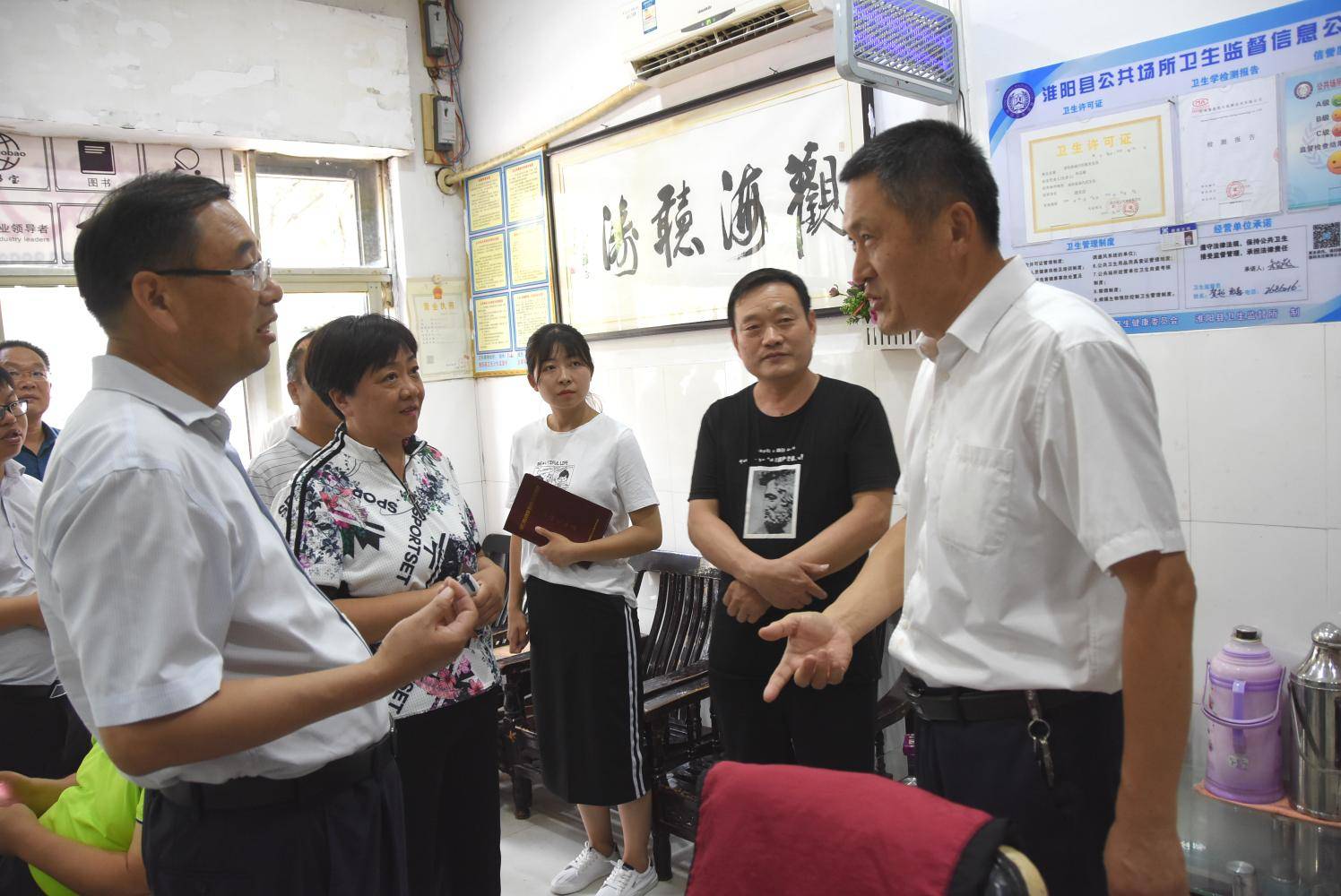 7月8日下午,淮阳区政府区长王毅、市督导组组长王建新调研督导创建国家卫生城市问题整改工作。区委常委李祥生,区政府办、创卫办、卫健委、公安局、住建局、市场监管局、城管局、城关镇等单位主要负责人参加调研督导。