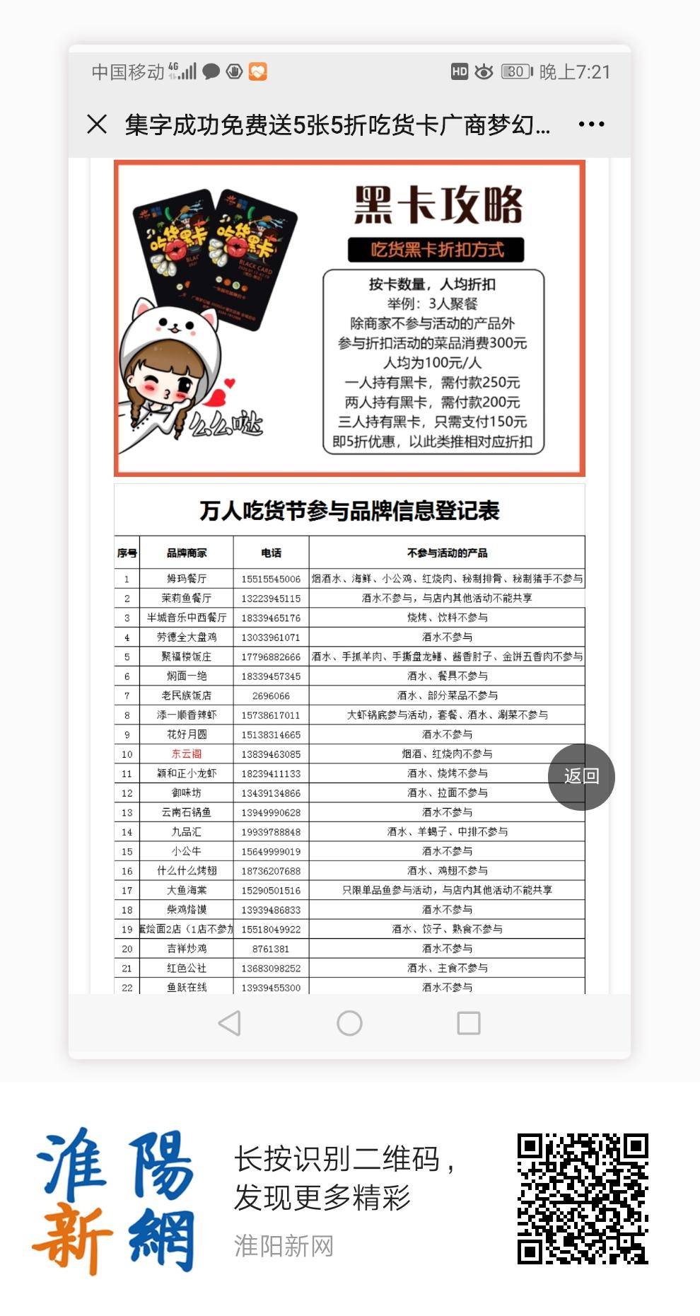 原价9.9元/张的淮阳吃货节黑卡 粉丝福利价仅需: 2元/张!!! *为保证享受最低折扣,建议人手一张哦~