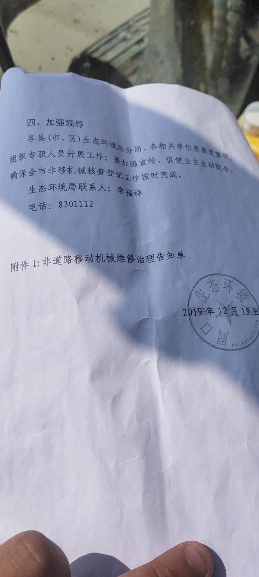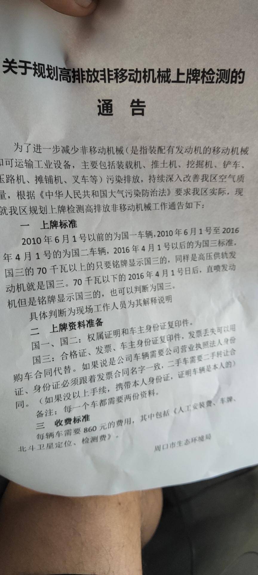 最近有一群外地的自称是周口环保局的外地工作人员,到处找工程机械让上环保牌照,刚开始860最近又涨到1060,说自己是环保局的也没工作证,交了钱了就给砸个牌子,请环保局澄清下别像以前一样砸个工程机械的联盟牌就找不到人了