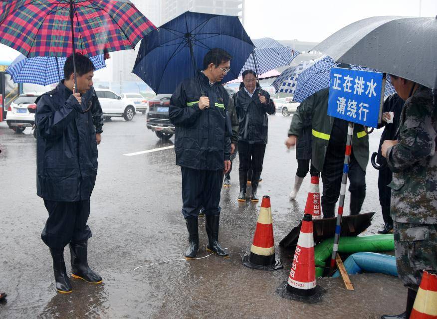 周口市淮阳区区委书记马明超冒雨带队调研城区防汛工作