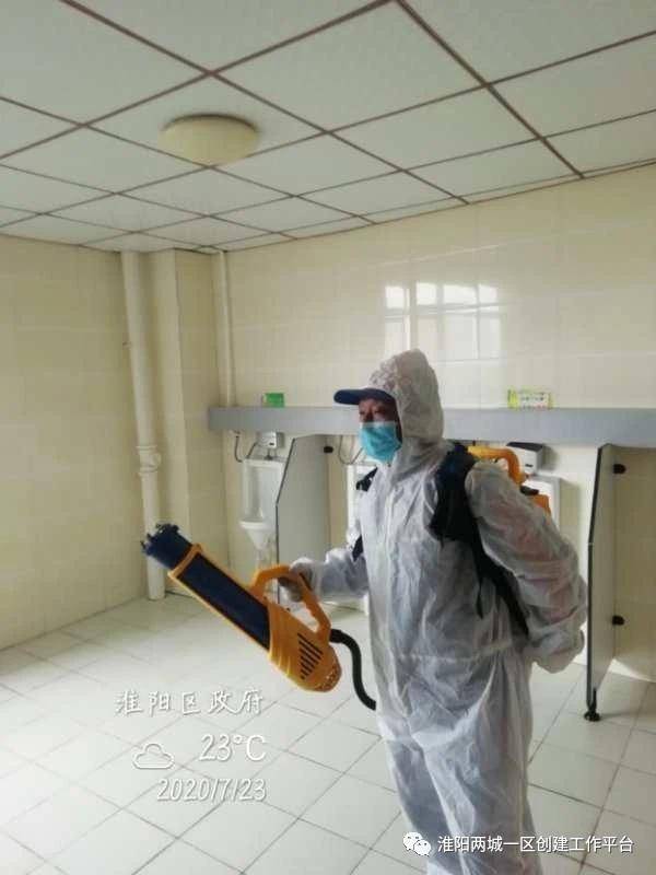 7月23日上午,区爱卫办按照创卫晨会工作部署,组织专业消毒消杀公司对城区部分机关单位、公厕、垃圾中转站、农贸市场等重点场所的洪涝灾后的疫情防控、病媒生物防制工作进行了消毒消杀,确保灾后无大疫。(赵亮)
