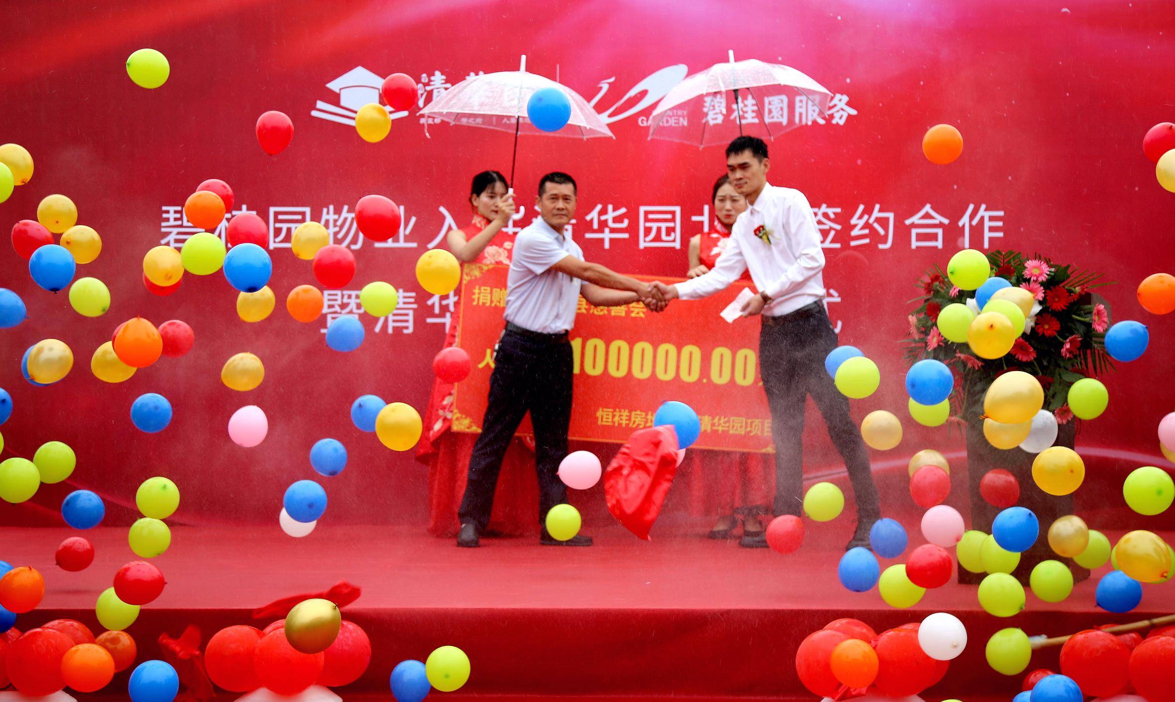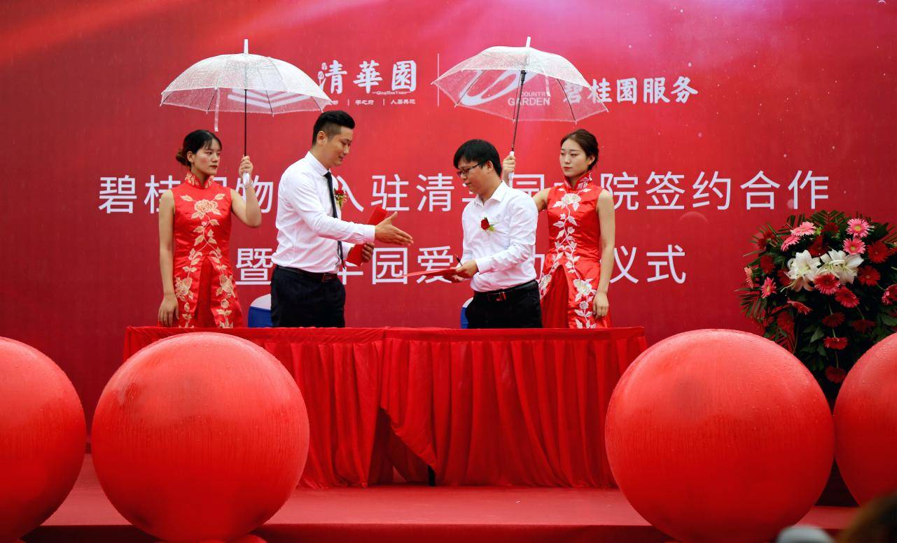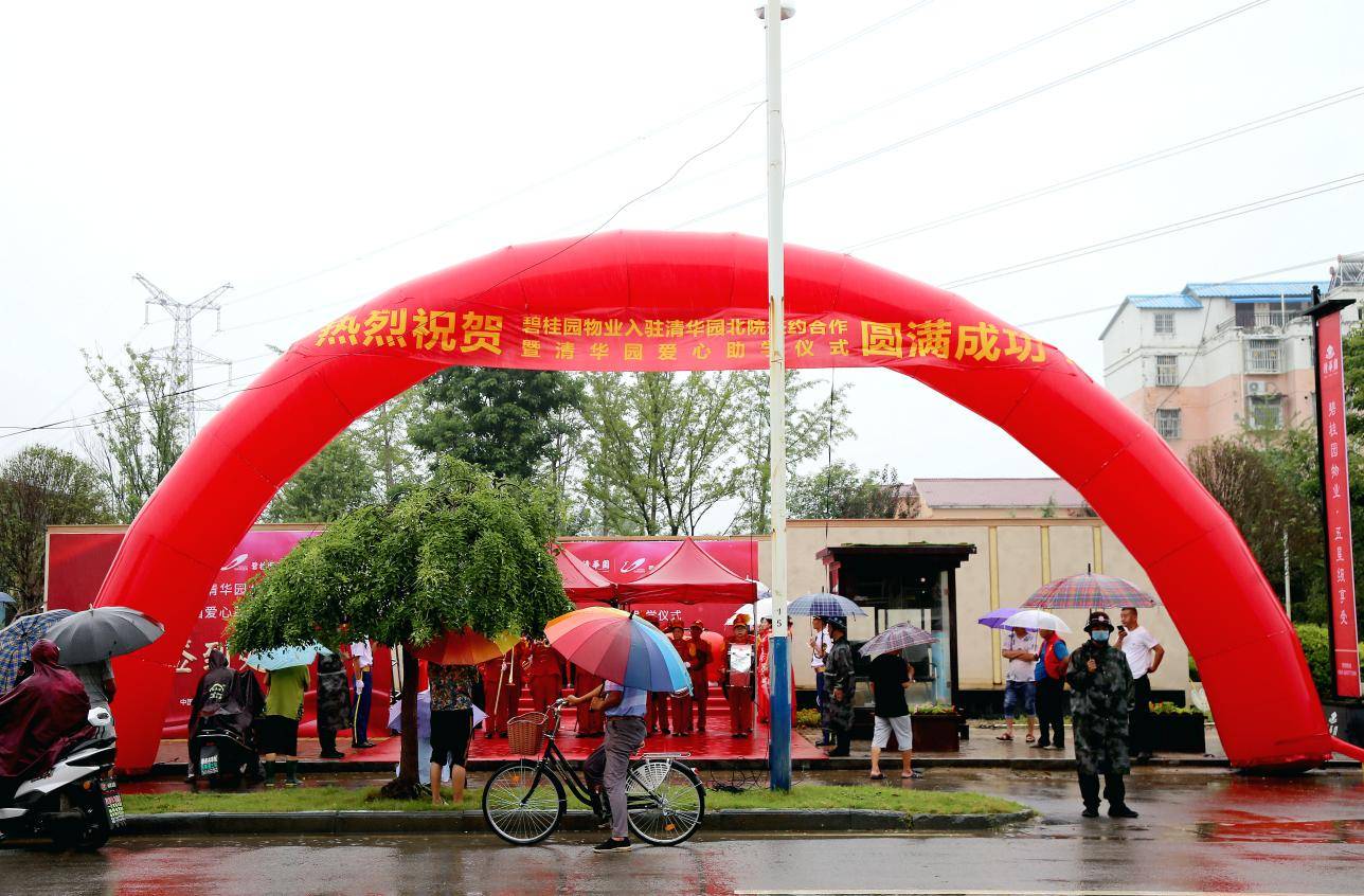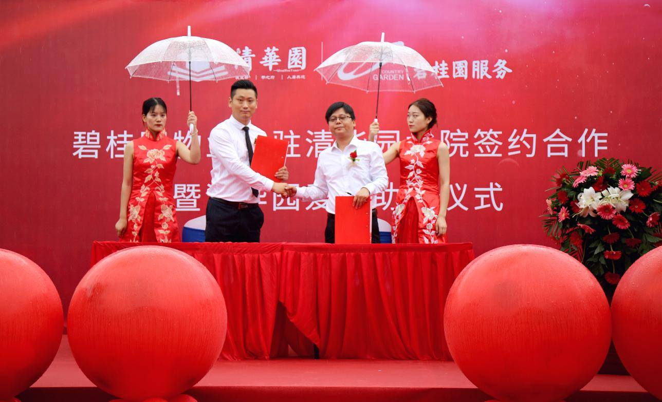 2020.7.26日上午,夏雨送清凉,爱心满古城。“碧桂园物业入驻清华园北院签约合作暨清华园爱心助学仪式”在
