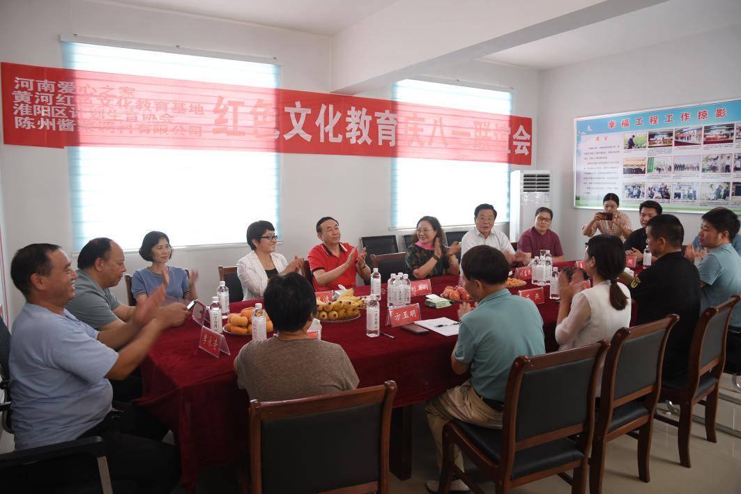 周口市淮阳区政协副主席兼区工商联主席刘卫洁致欢迎辞;陈州酱菜调料有限公司董事长苏燕介绍公司发展情况;河南老兵协会李永奇介绍红色教育基地筹备情况;河南省爱心之家刘侠发表了爱心感言;河南省军区原副参谋长刘卫国作了重要讲话;河南省委宣传部原副巡视员刘富民讲话并当场赋诗一首: