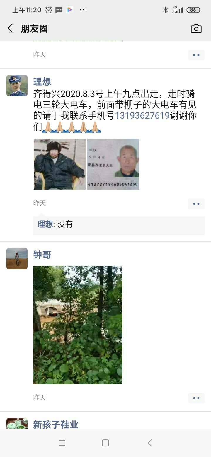 寻人启事 :齐得兴 男,齐老乡大王庄人,根据信息发现目前老人在 工业集聚区大李周边。凡帮助找到老人者 奖励2000元。 联系电话:13193627619