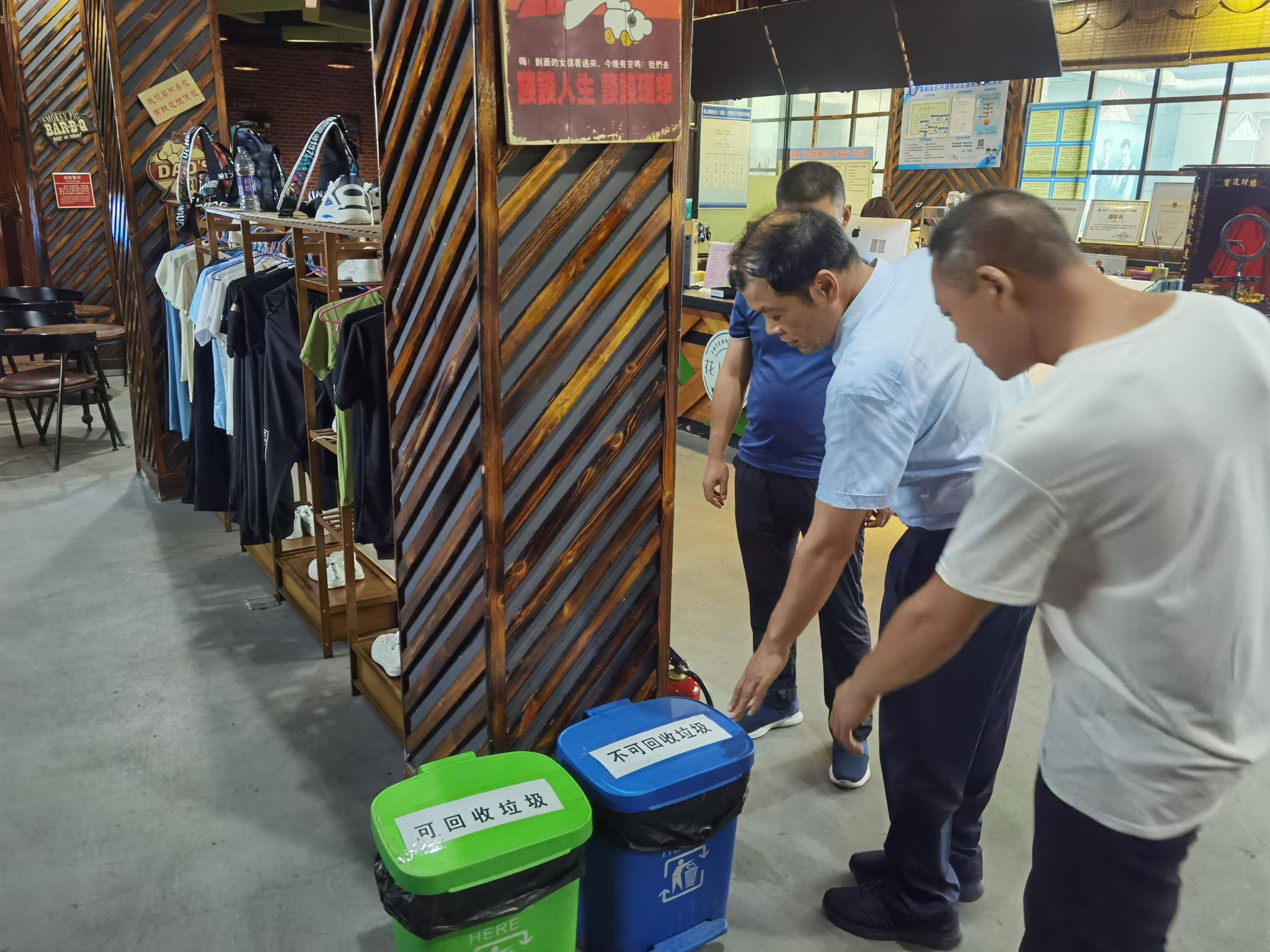 蓝色的桶应该是可回收垃圾桶!绿色的厨余垃圾桶。