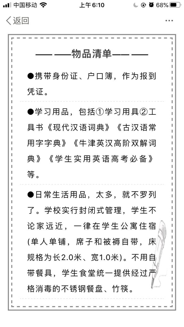 点开看看便知,陈州高中2020级高一新生入学须知