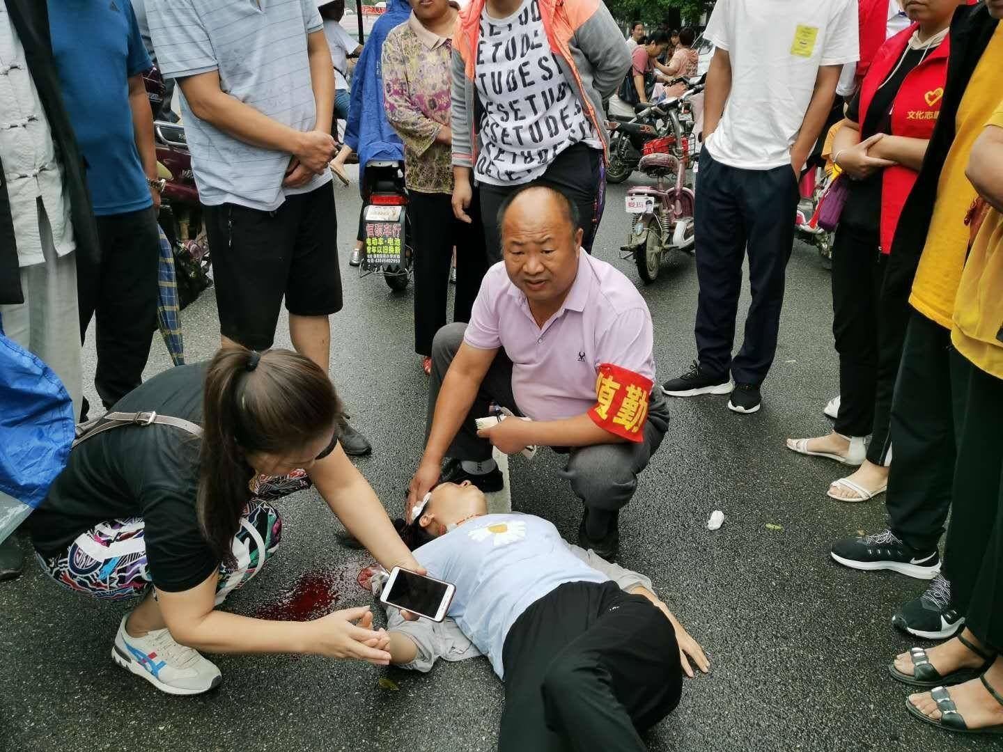 区文广旅局志愿者张永刚像平常一样在分包路段大同街开展创卫工作,这时一位骑电动车的女士由此路过,由于刚下过雨,露面较滑,该女士不慎摔倒在地,头部受伤,鲜血直流,张永刚同志见此情景,和路人一起伸手救助,及时拨打120、110急救电话,并帮忙联系其家人,使该女士得到了及时救助。