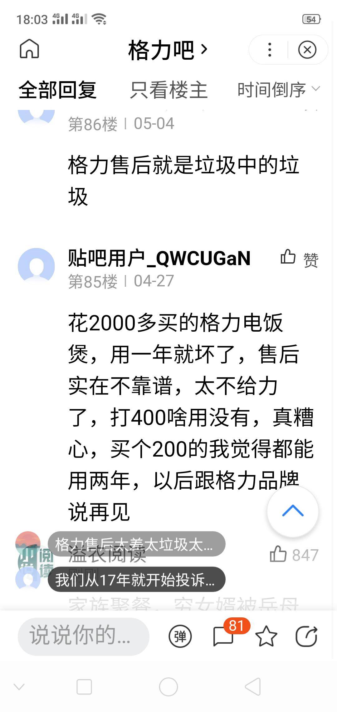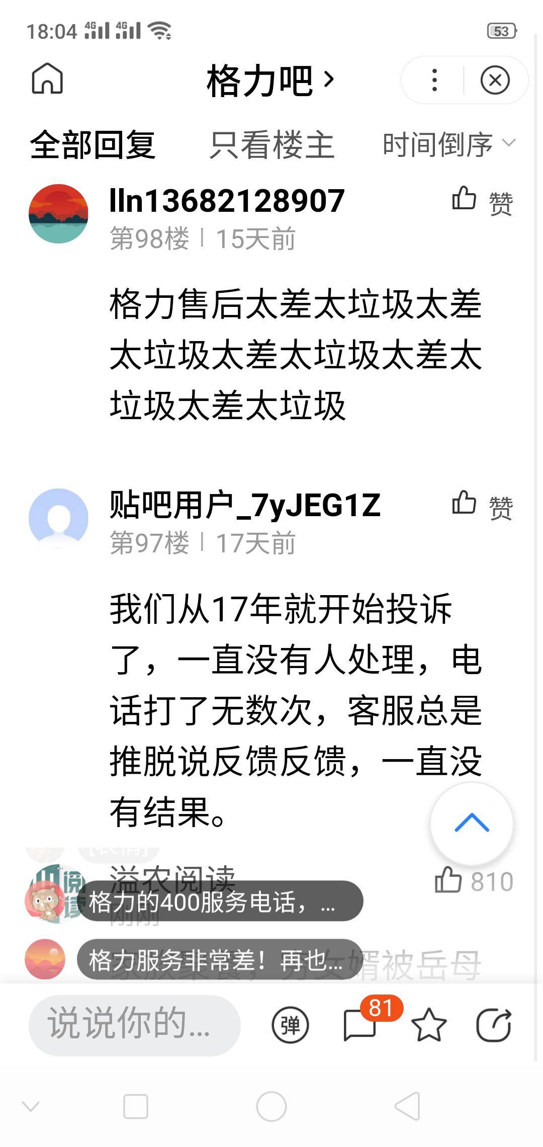 原来很少关注格力的负面消息,但昨夭看了一下格力贴吧,问题还真多,特别是关于售后服务的。