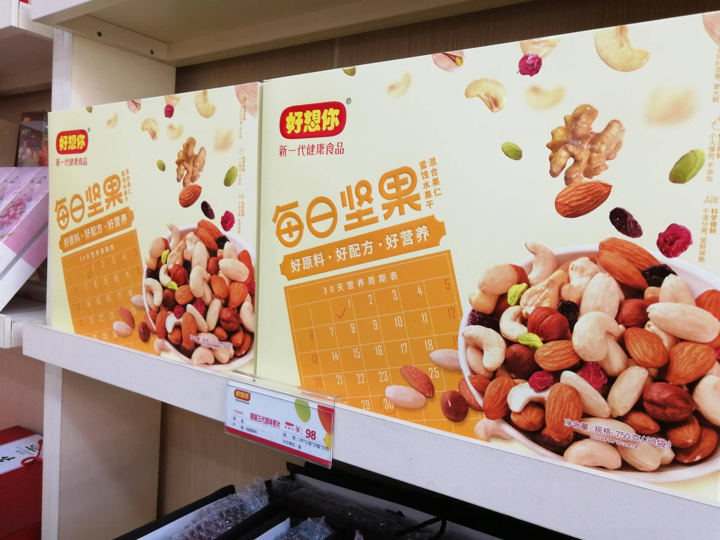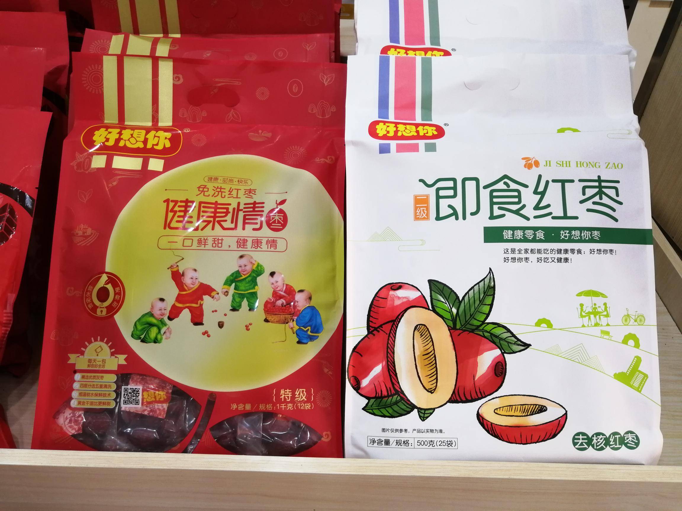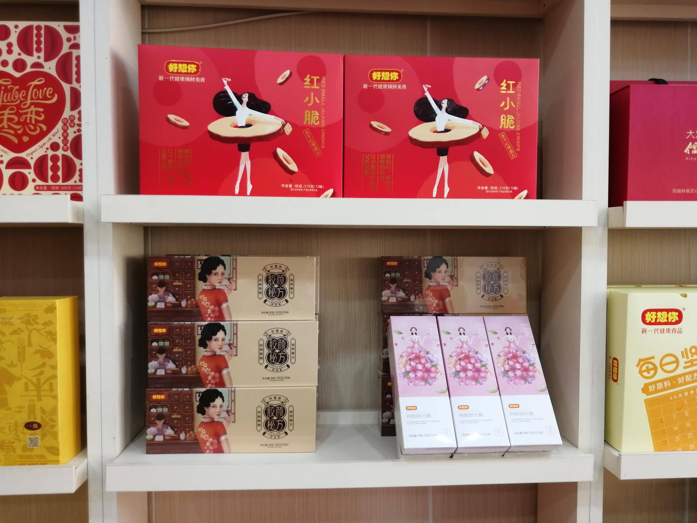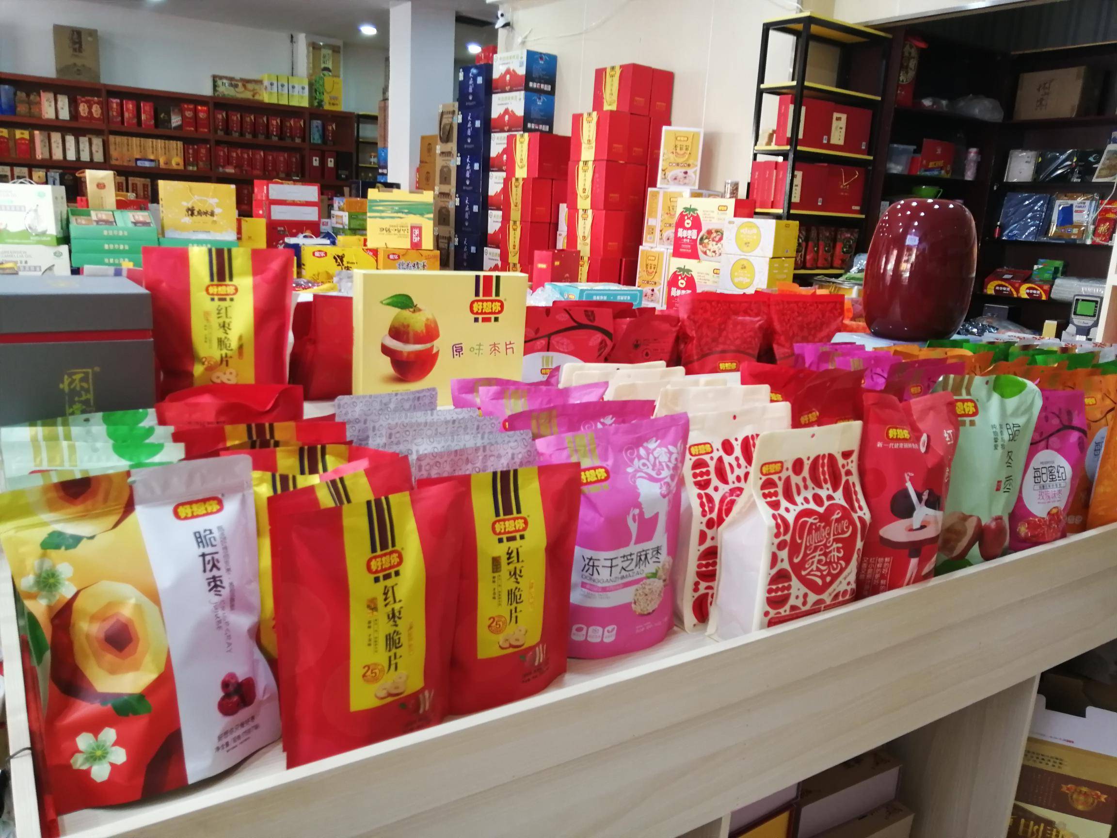 “好想你”专卖店主要经营好想你枣、铁棍山药、信阳毛尖等河南名优特产。 好想你枣是一家集红枣种植加工、冷藏保鲜、科技研发、贸易出口、观光旅游为一体的综合型企业。目前已成为红枣行业规模最大、技术最先进、产品种类最多、销售网络覆盖最全、辐射带动最广、市场占有率最高的龙头企业。 近年来,公司获得国家农业产业化重点龙头企业、农业产业化行业十强龙头企业称号、全国农产品加工业出口示范企业、国家级观光工业旅游示范企业、全国食品行业优秀食品龙头企业、 全国枣产业骨干龙头企业,公司制定的免洗红枣标准被国家质检总局认定为国家标准;公司“好想你”、“枣博士”商标被国家商标总局认定为“中国驰名商标。