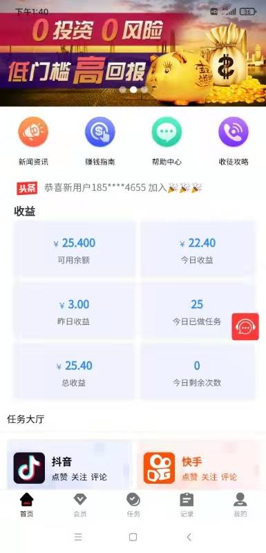 扫码领任务,看抖音点赞就可以赚钱,绝对真实