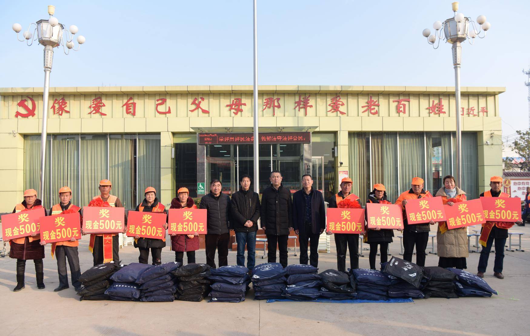 在表彰大会上,首先由邵辉副镇长宣读了表彰决定,此次共有10名先进环卫工人受到表彰,现场向受表彰者颁发奖牌,并给予受表彰者每人500元的奖励。同时向所有的环卫工人发放棉大衣。让广大环卫工人深切感受到了白楼镇的关怀和温暖。