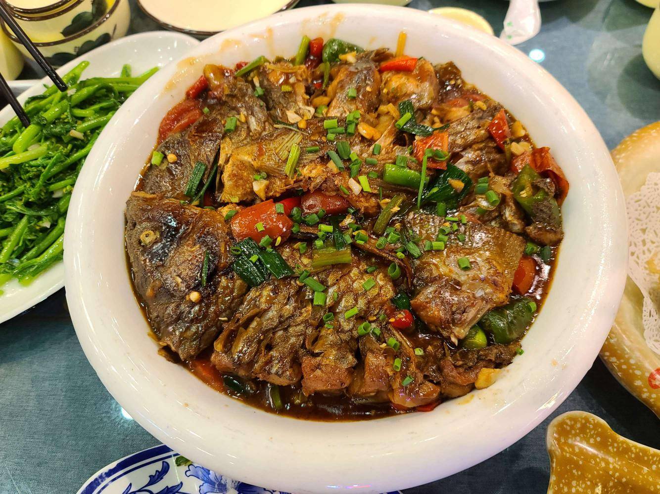阳朔最著名的美食应该算是啤酒鱼了,满大街都是各种品牌的啤酒鱼,我们找了一家装修很典雅的啤酒鱼品尝了一下,这边的啤酒鱼鱼鳞不去掉,吃着有点膈应,感觉口味一般,一份啤酒鱼加三个菜200块钱!