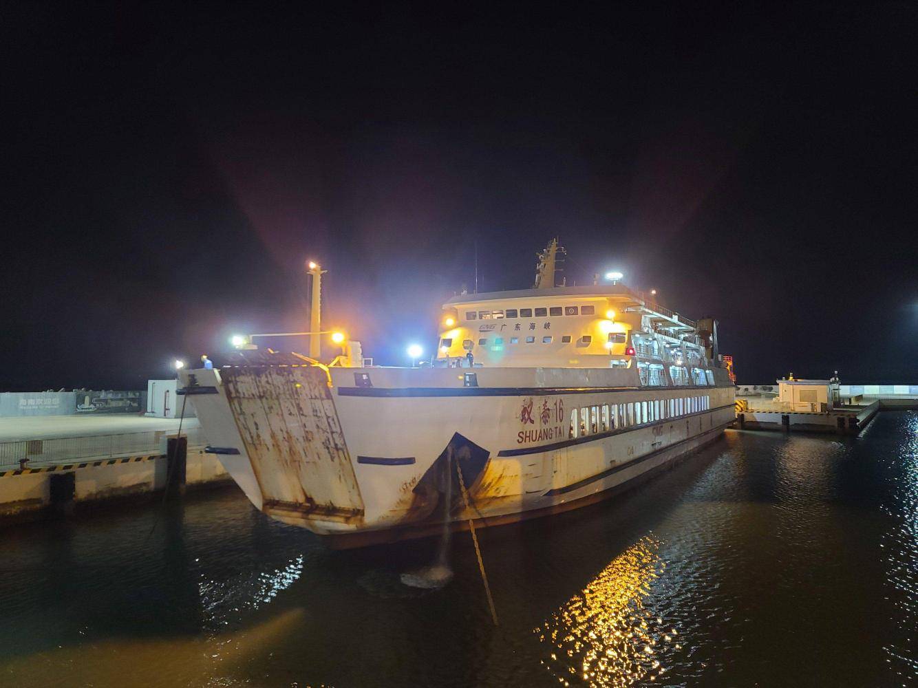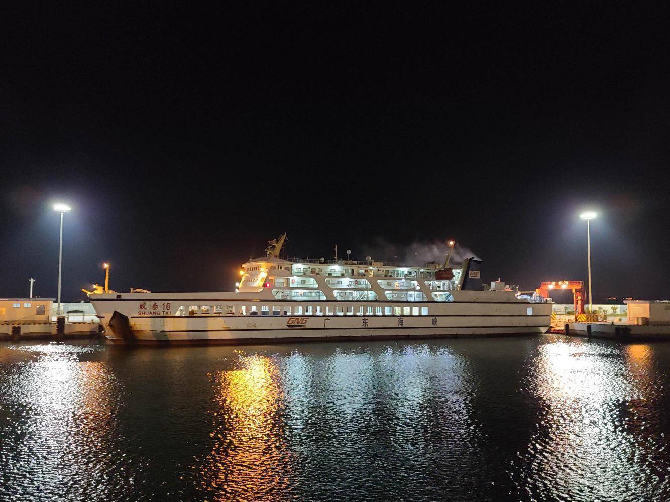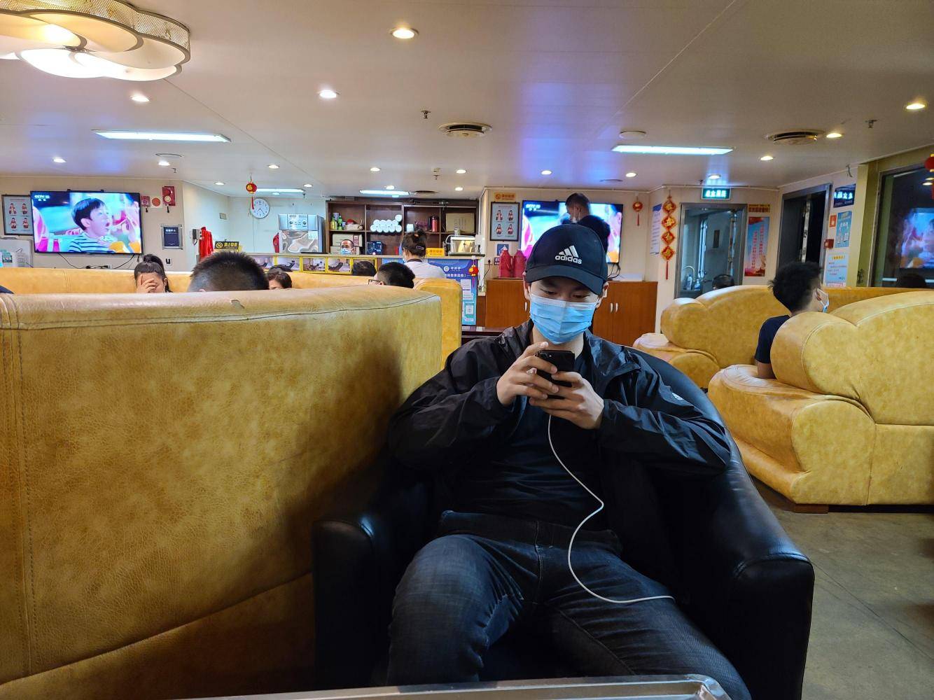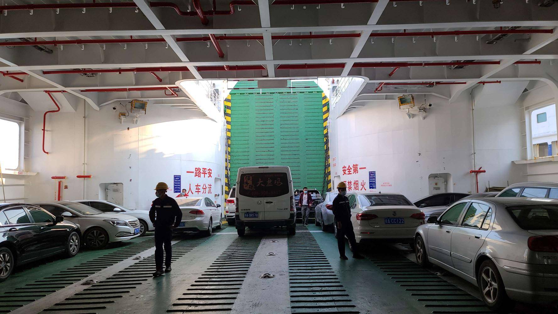 经过三天的边走边玩我们在初四下午三点来到了广东湛江徐闻港口,在自助机上买了船票,车415元含一名司机,其他人员每人41.5女儿有学生证半价优惠,买好船票需要过安检,由于不知道车上不让带液化气罐就没把做饭用的液化气罐藏起来,被安检人没收了,提醒以后来三亚的车友一定把液化气罐藏起来!过完安检车就开到船上了,货仓甲板上密密麻麻停满了车。来往海口和徐闻的车很多,为了能最大限度的多装车。这里的工作指挥员会要求你尽可能地靠近旁边的车。如果车技不过关,难免被说道一通,轮船下面是装汽车的,大船的上部是坐人的,船上卖的吃的喝的都有,由于上一个船刚开走我们等的有三个小时才开船,船在琼州海峡行驶90分钟到达海口!