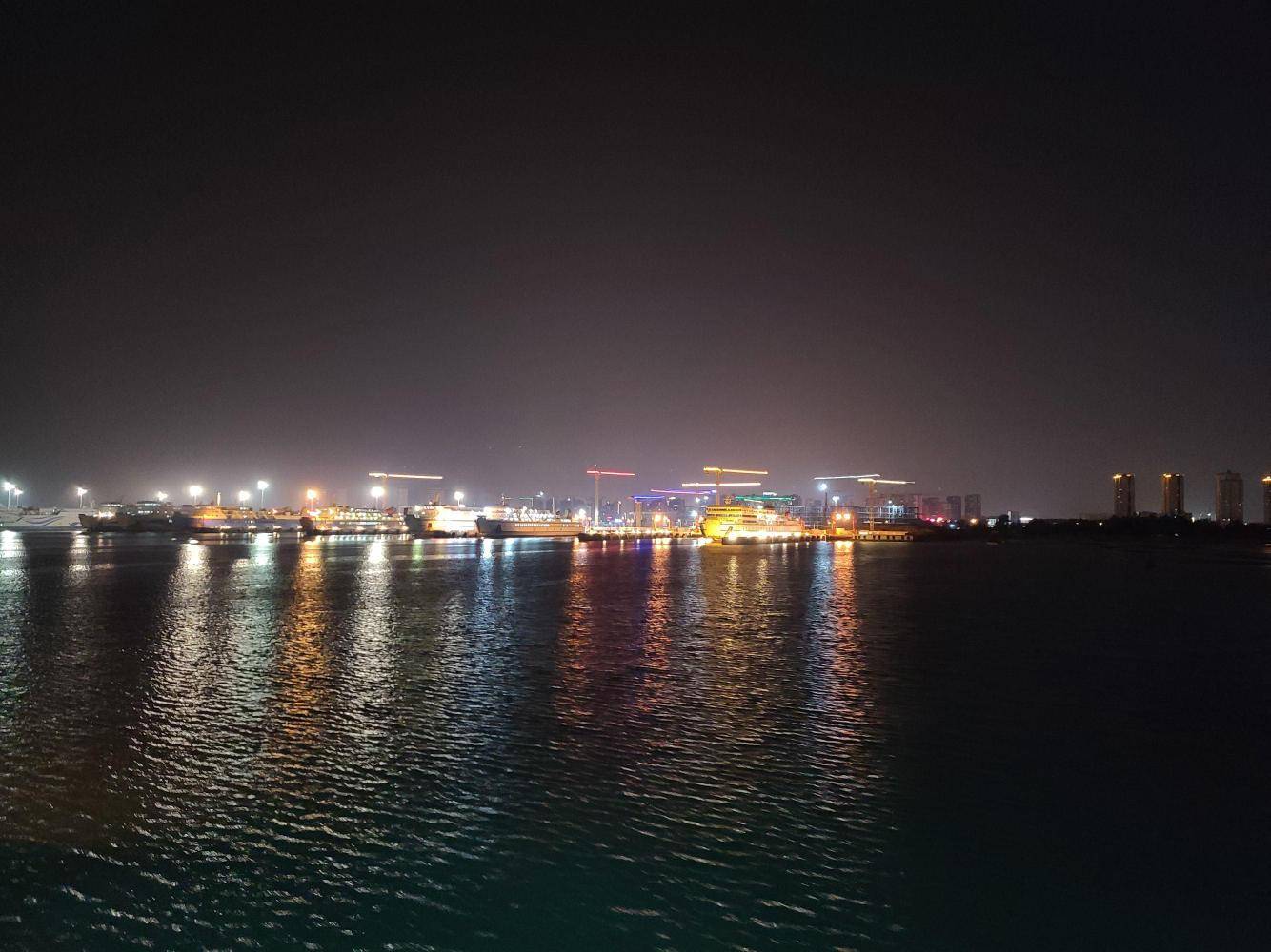 轮船经过90分钟的航行从岛外穿过琼州海峡在晚上八点半到达了海口,怀着无比激动的心情从船上把车开下来开始往海口方向行驶,看到路两旁整齐的椰子树在路灯的照射下显得更加美丽整齐,海南给我的第一印象就是风景真美啊!