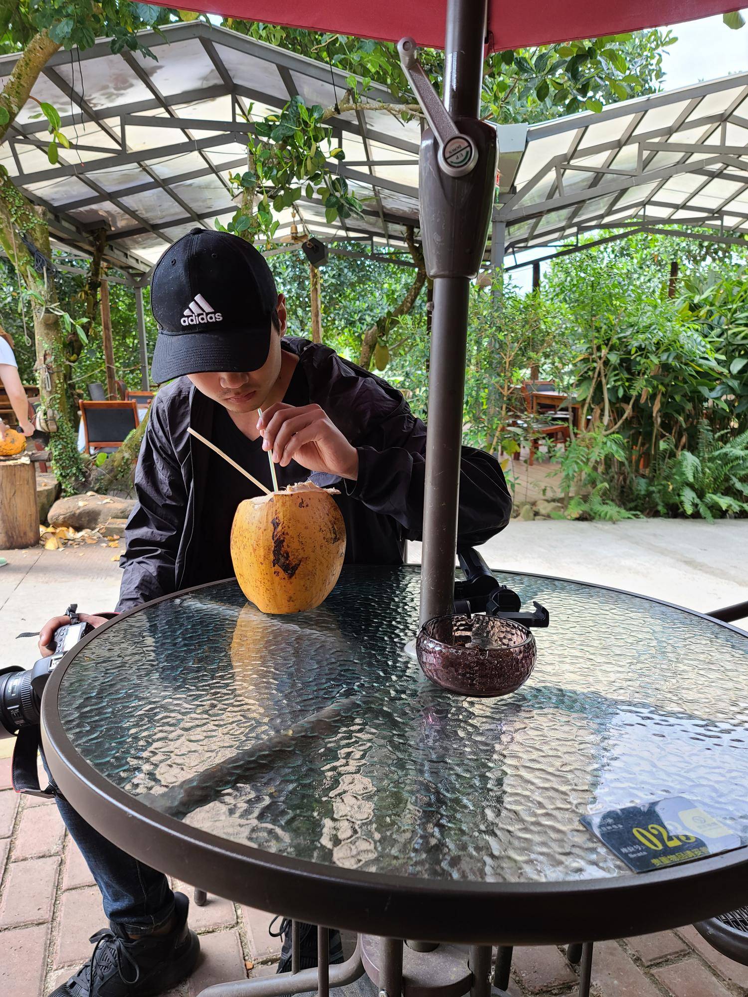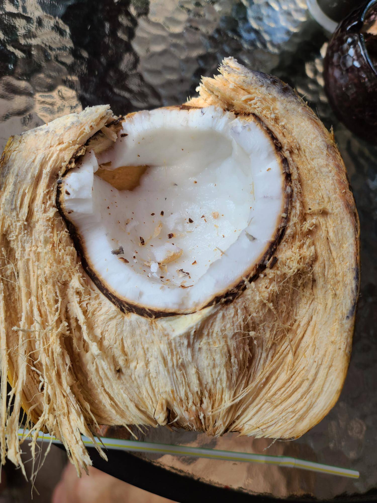 喝完椰子汁把椰子劈开里面白色椰子肉也很好吃