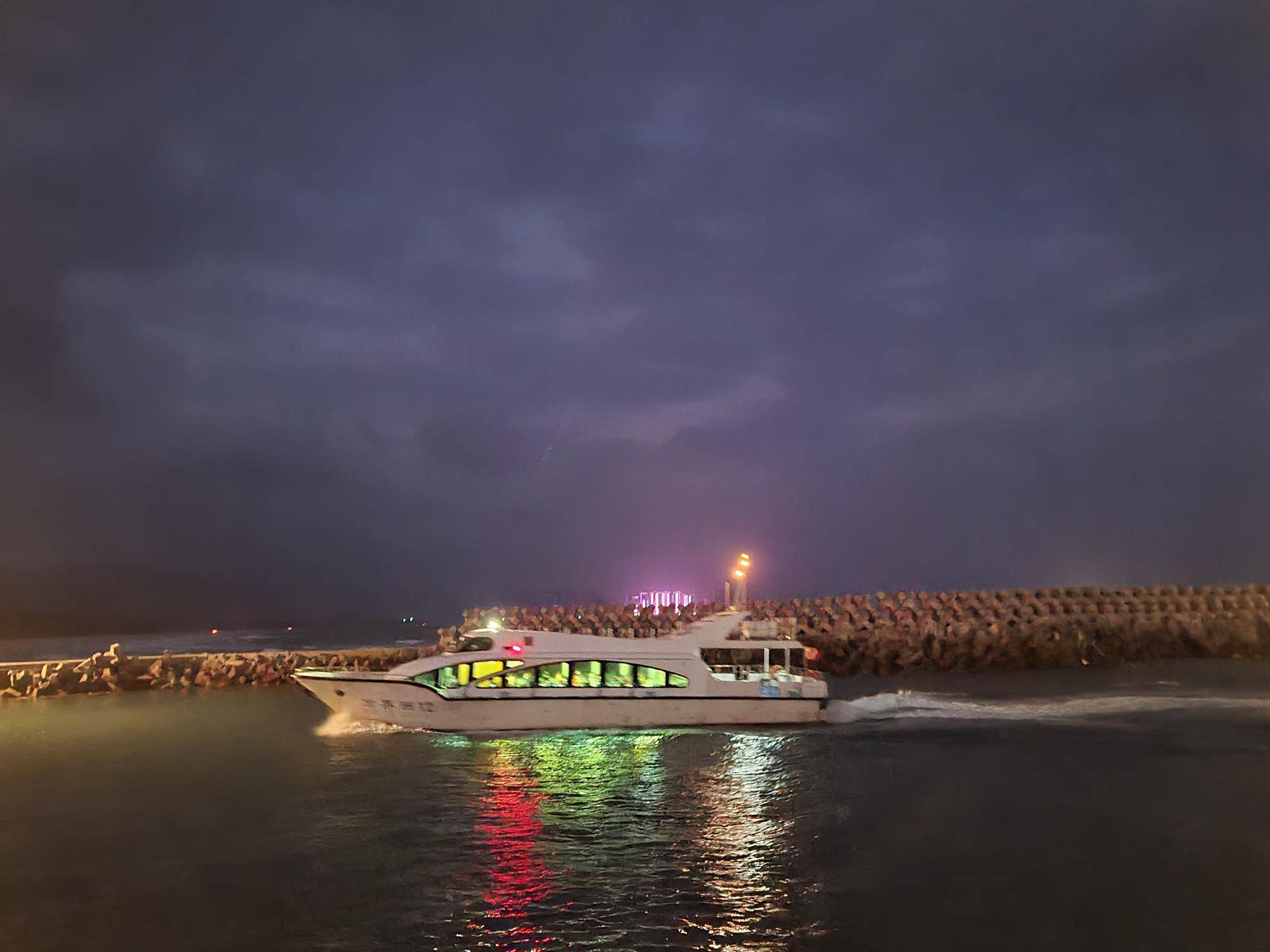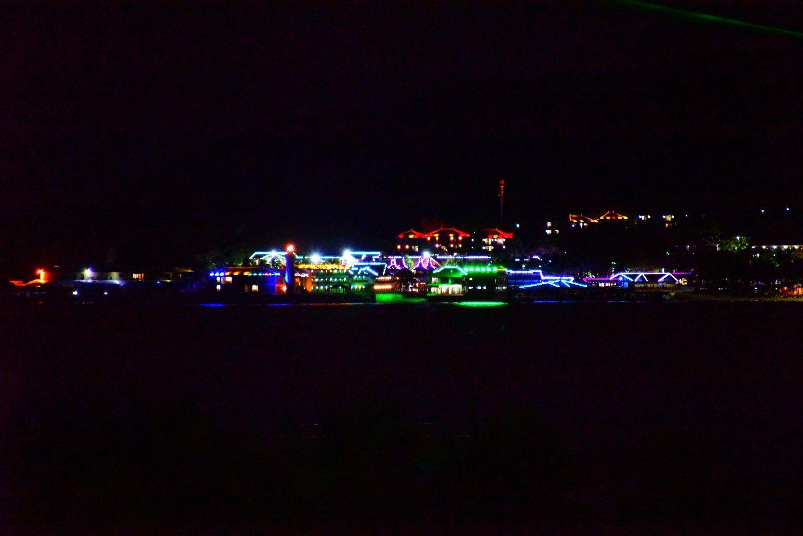 游览完兴隆咖啡谷继续朝下一个景区分界洲岛出发,我们大概下午6点左右到达分界洲岛,天已经快黑了,分界洲岛是海岸线的一个岛,到岛上需要坐船过去,遥望海那边的分界洲岛,五光十色的灯光宛如夜间的精灵一般俏皮可爱,闪闪的印证着存在。