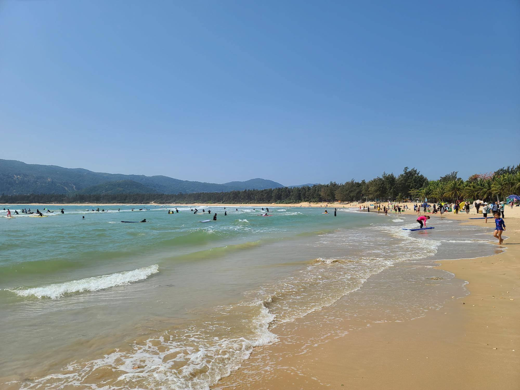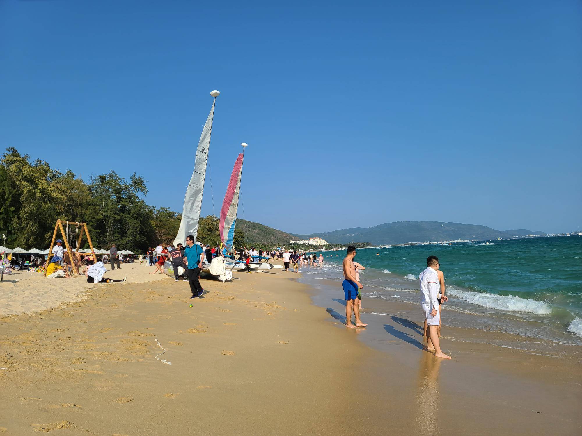 三亚很很出名的海滩就是亚龙湾了,亚龙湾位于中国最南端的热带滨海旅游城市——三亚市东南28公里处,是海南最南端的一个半月形海湾,全长约7.5公里,是海南名景之一。亚龙湾沙滩绵延7公里且平缓宽阔,浅海区宽达45-60米。沙粒洁白细软,海水澄澈晶莹,而且蔚蓝。能见度7-9米。海底世界资源丰富,有珊瑚礁、各种热带鱼、名贵贝类等。年平均气温25.5°C,海水温度22-25.1°C,终年可游泳,被誉为“天下第一湾”