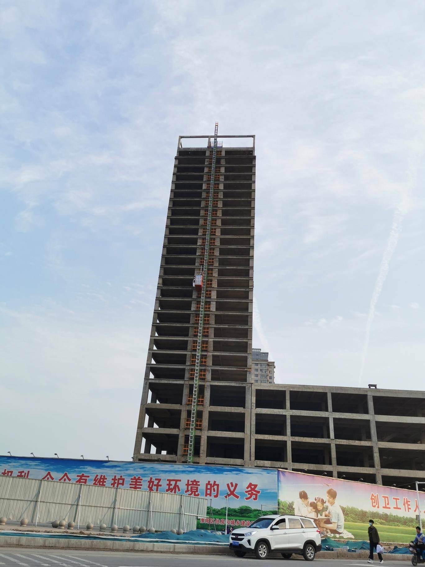 虽然慢,不过比不动强,施工电梯装了两个