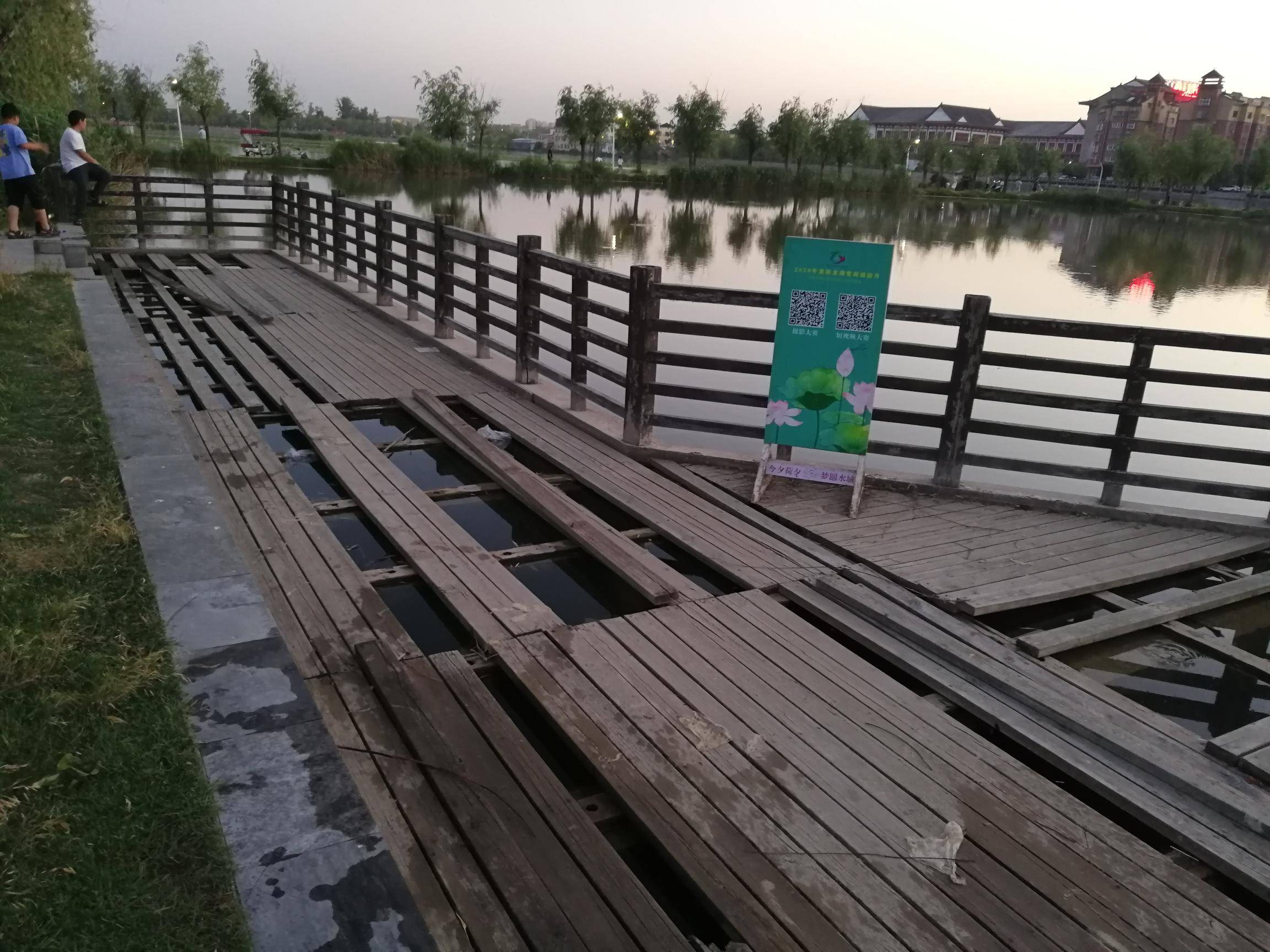 区城西南隅水静如练的南坛湖中,这里红莲映日,风光优美,尤其是弦歌文化广场更是群众休闲娱乐的好去处。近日却发现景区木栈道由于年久失修,已出现多处破损,既影响了景区美观,还存在一定的安全隐患,希望能引起有关部门的重视,早日修复木栈道。