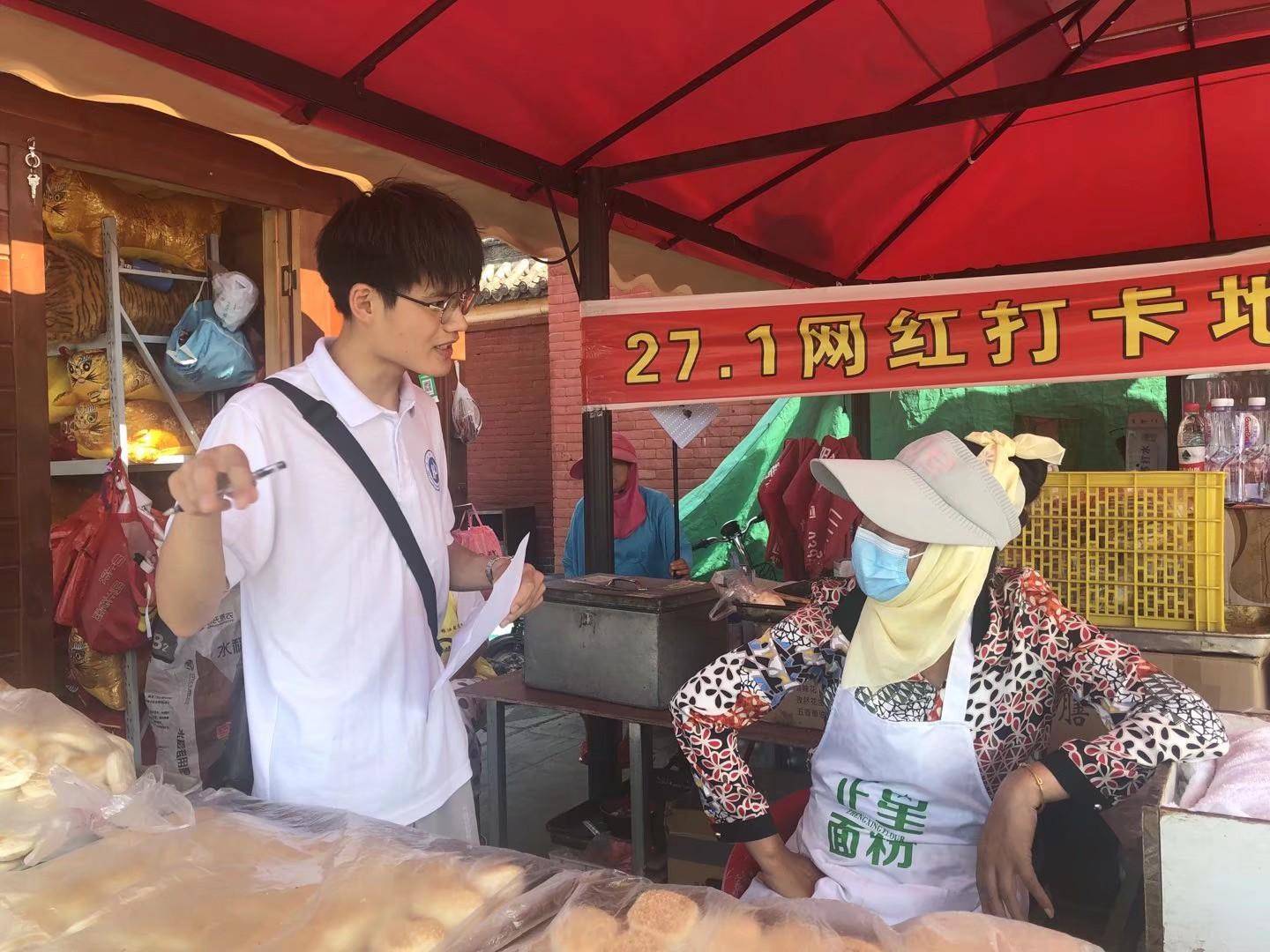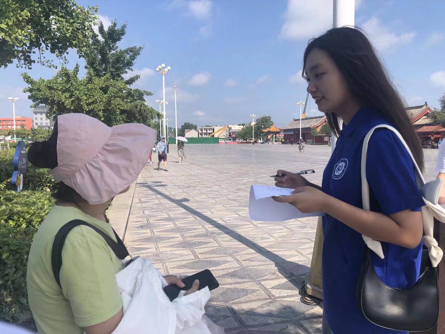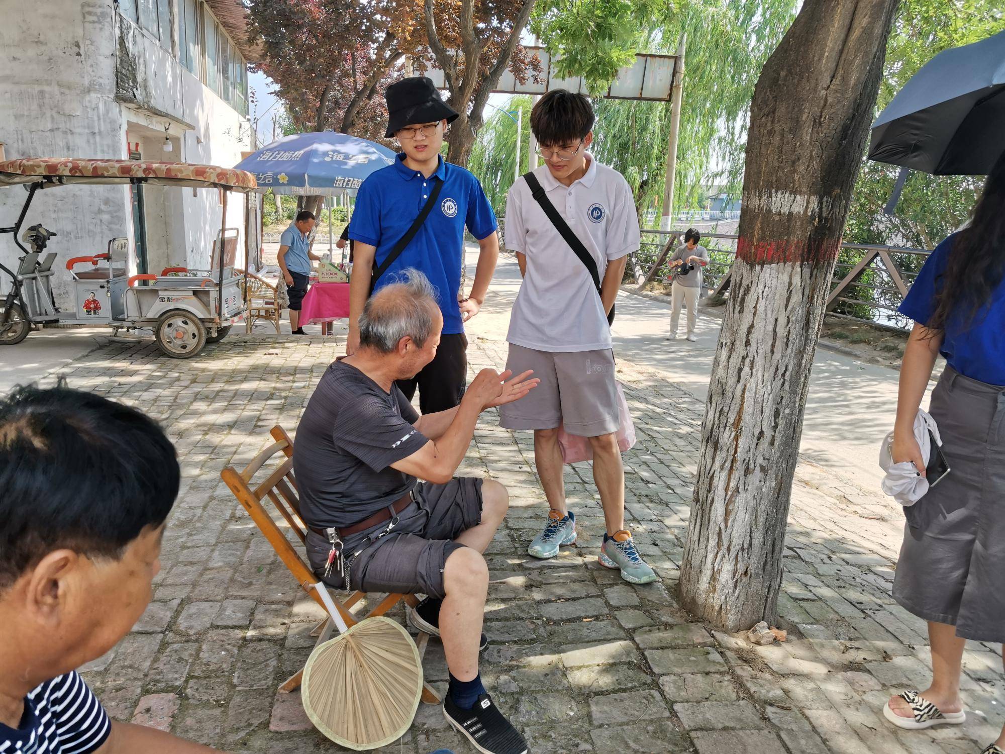 为深入践行“弘扬传统文化”和“三下乡”活动,全面深入了解和研究传统文化传承现状和发展路径,七月十三日上午,河南理工大学“讲好黄河故事,传承多彩非遗”实践团赴河南省周口市淮阳区开展关于国家非遗“泥泥狗”发展现状调研活动。图为实践成员对