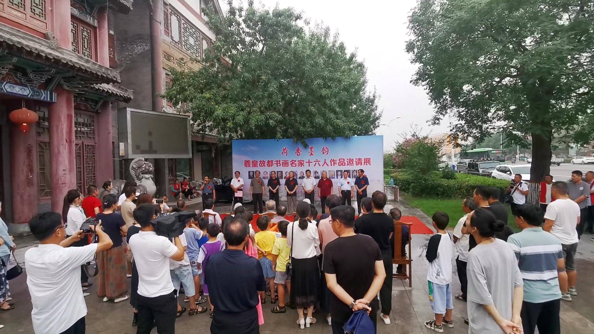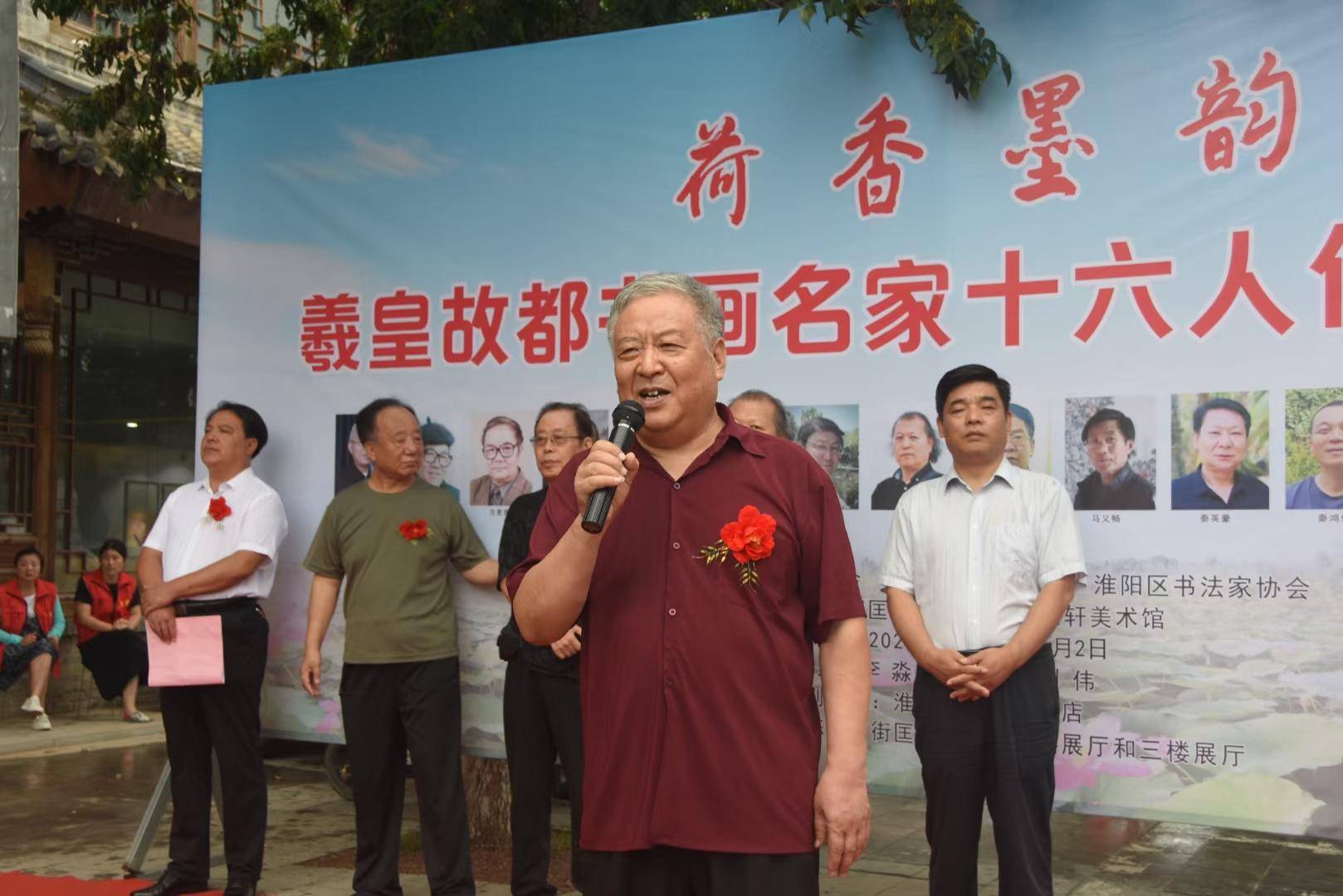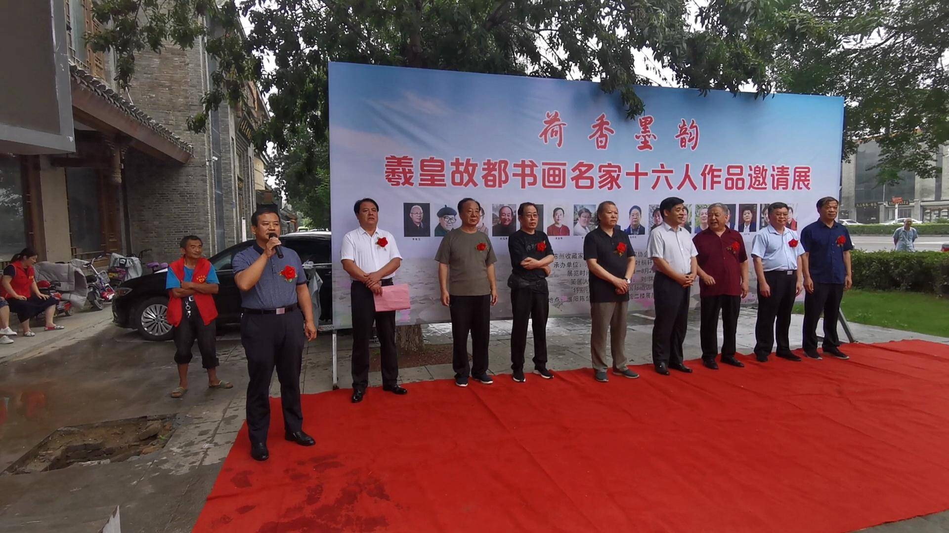 龙湖赏荷月期间,由陈州收藏家协会、 淮阳区美术家协会、 淮阳区书法家协会主办、淮阳匡庐美术馆 、叶桐轩美术馆承办的“荷香墨韵” 羲皇故都书画名家 十六人作品邀请展7月18日上午在淮阳东关匡庐美术馆前隆重开幕。
